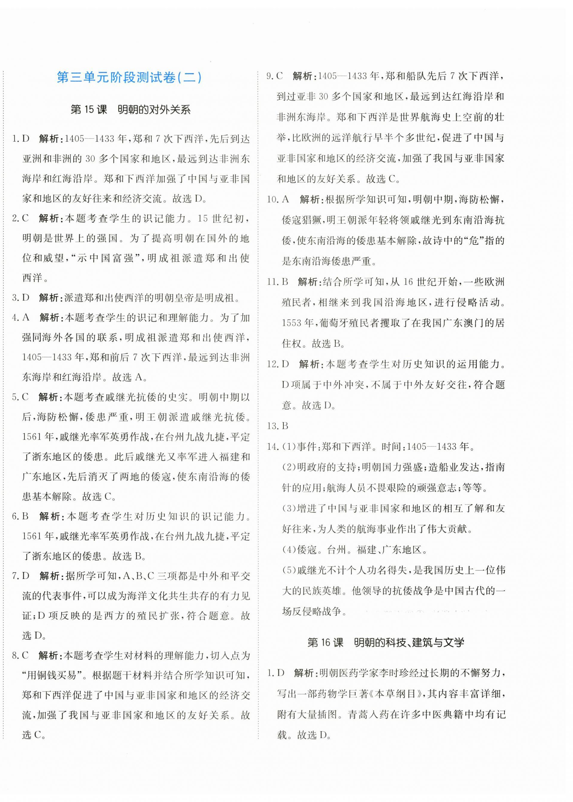 注:目前有些书本章节名称可能整理的还不是很完善,但都是按照顺序排列的,请同学们按照顺序仔细查找。练习册 2024年新目标检测同步单元测试卷七年级历史下册人教版 答案主要是用来给同学们做完题方便对答案用的,请勿直接抄袭。