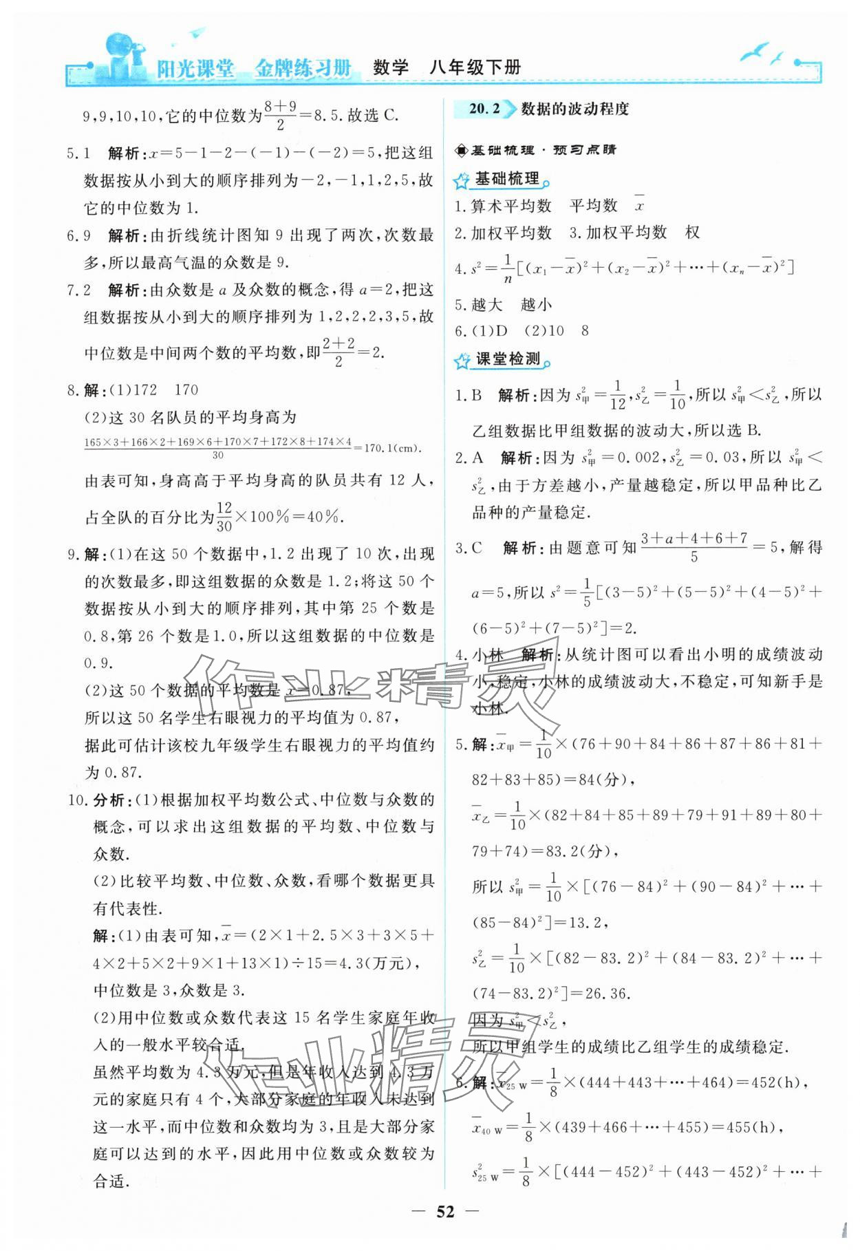 2024年阳光课堂金牌练习册八年级数学下册人教版