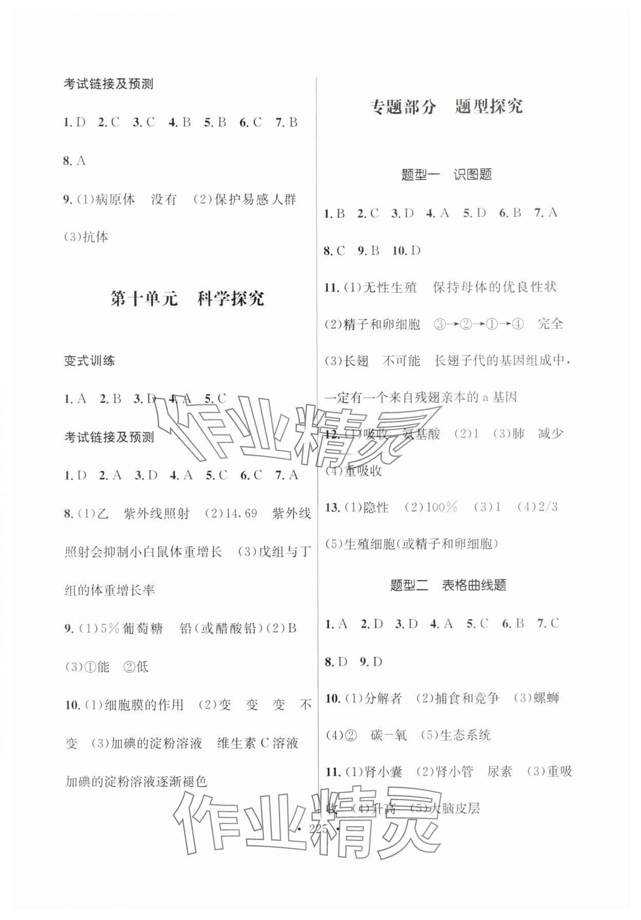 注:目前有些书本章节名称可能整理的还不是很完善,但都是按照顺序排列的,请同学们按照顺序仔细查找。练习册 2024年云南省初中学业水平考试总复习及测试中考生物 答案主要是用来给同学们做完题方便对答案用的,请勿直接抄袭。