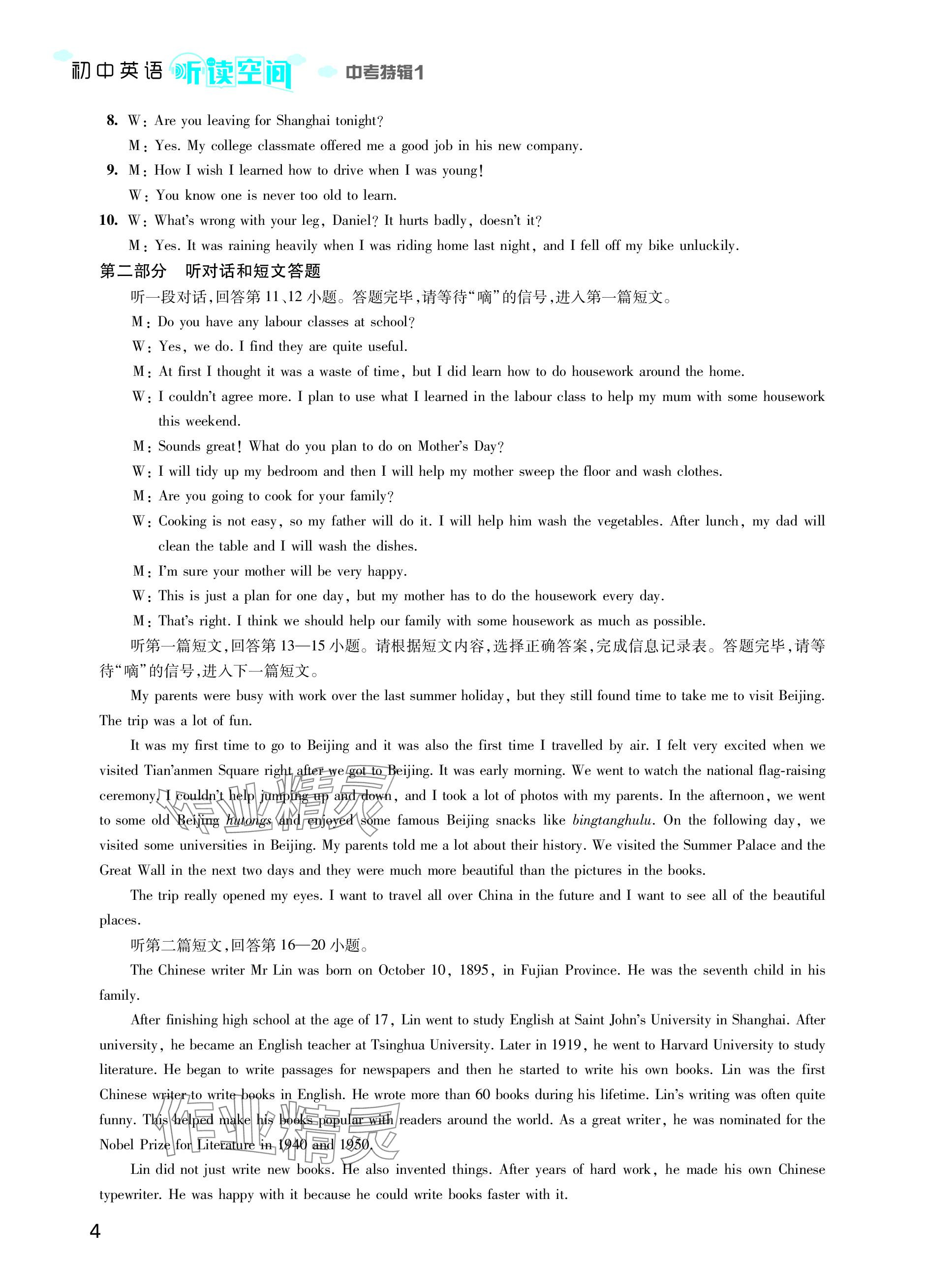 注:目前有些书本章节名称可能整理的还不是很完善,但都是按照顺序排列的,请同学们按照顺序仔细查找。练习册 2024年初中英语听读空间中考特辑一 答案主要是用来给同学们做完题方便对答案用的,请勿直接抄袭。