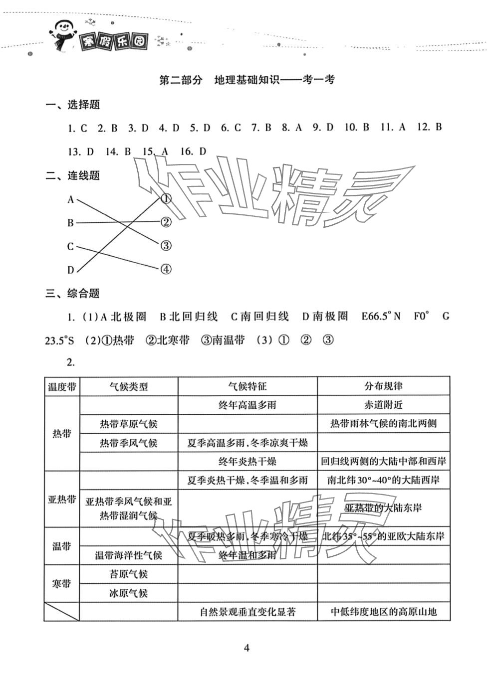 注:目前有些书本章节名称可能整理的还不是很完善,但都是按照顺序排列的,请同学们按照顺序仔细查找。练习册 2024年寒假乐园海南出版社七年级地理 答案主要是用来给同学们做完题方便对答案用的,请勿直接抄袭。