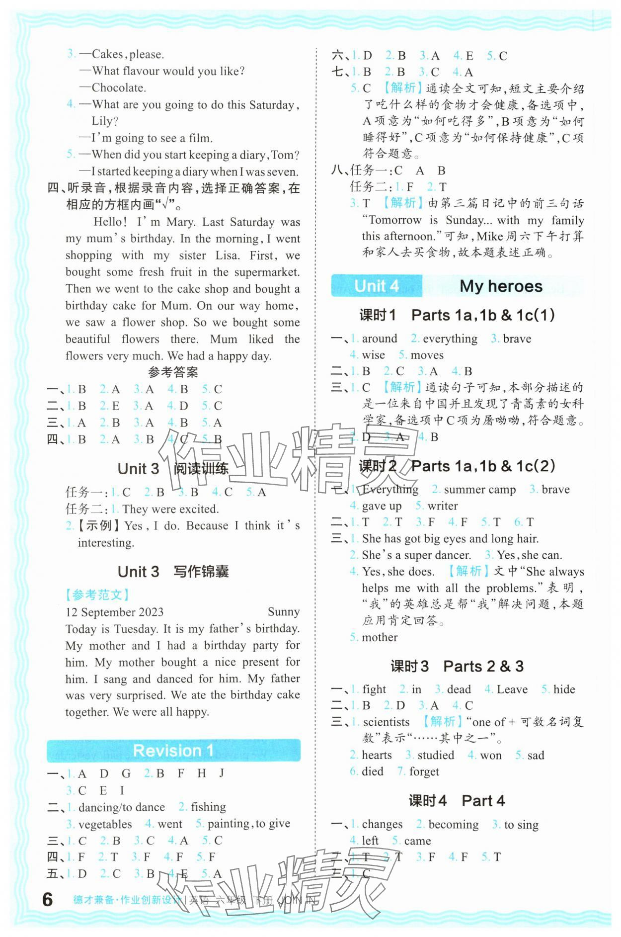 注:目前有些书本章节名称可能整理的还不是很完善,但都是按照顺序排列的,请同学们按照顺序仔细查找。练习册 2024年王朝霞德才兼备作业创新设计六年级英语下册Join in 答案主要是用来给同学们做完题方便对答案用的,请勿直接抄袭。