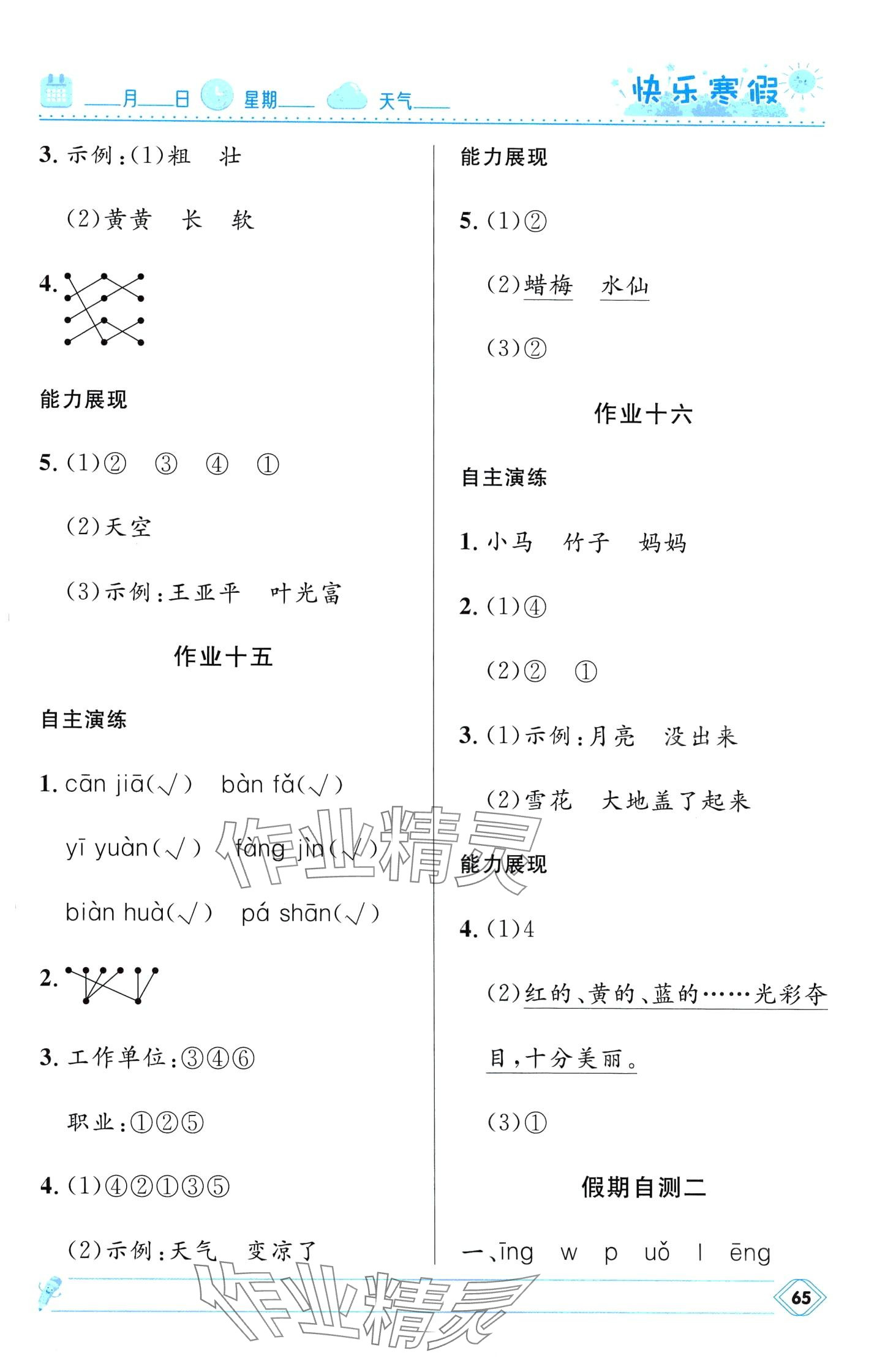 注:目前有些书本章节名称可能整理的还不是很完善,但都是按照顺序排列的,请同学们按照顺序仔细查找。练习册 2024年赢在起跑线快乐寒假河北少年儿童出版社一年级语文人教版 答案主要是用来给同学们做完题方便对答案用的,请勿直接抄袭。