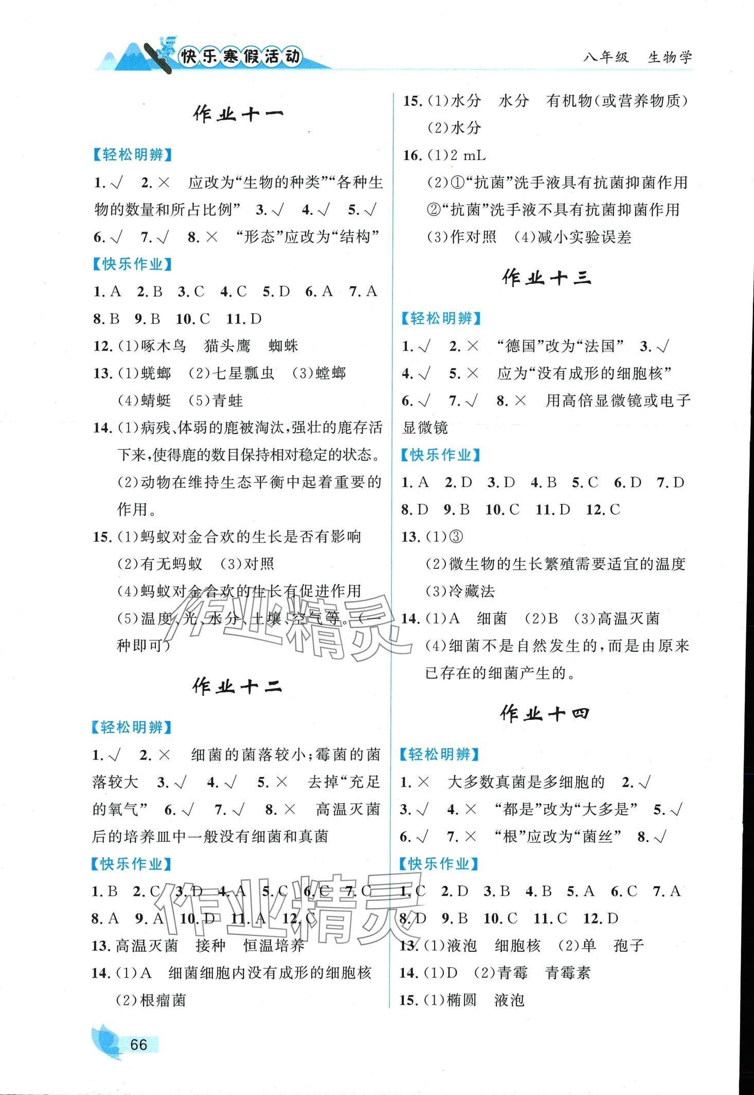 注:目前有些书本章节名称可能整理的还不是很完善,但都是按照顺序排列的,请同学们按照顺序仔细查找。练习册 2024年快乐寒假活动八年级生物 答案主要是用来给同学们做完题方便对答案用的,请勿直接抄袭。