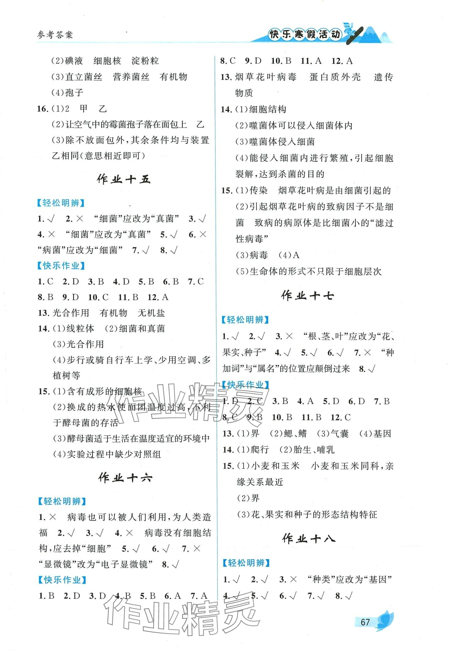 注:目前有些书本章节名称可能整理的还不是很完善,但都是按照顺序排列的,请同学们按照顺序仔细查找。练习册 2024年快乐寒假活动八年级生物 答案主要是用来给同学们做完题方便对答案用的,请勿直接抄袭。