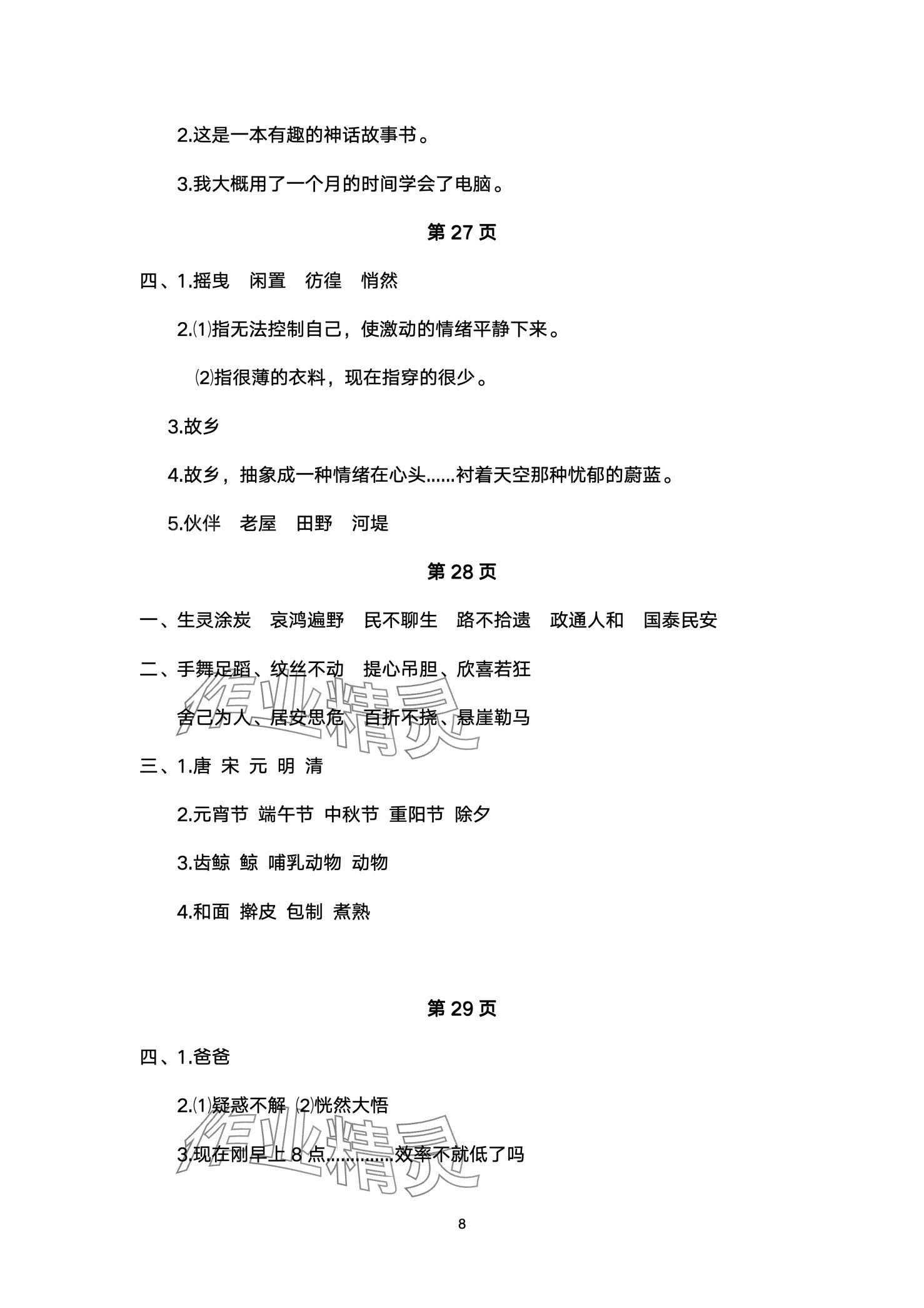 注:目前有些书本章节名称可能整理的还不是很完善,但都是按照顺序排列的,请同学们按照顺序仔细查找。练习册 2024年寒假作业教育科学出版社五年级语文人教版 答案主要是用来给同学们做完题方便对答案用的,请勿直接抄袭。