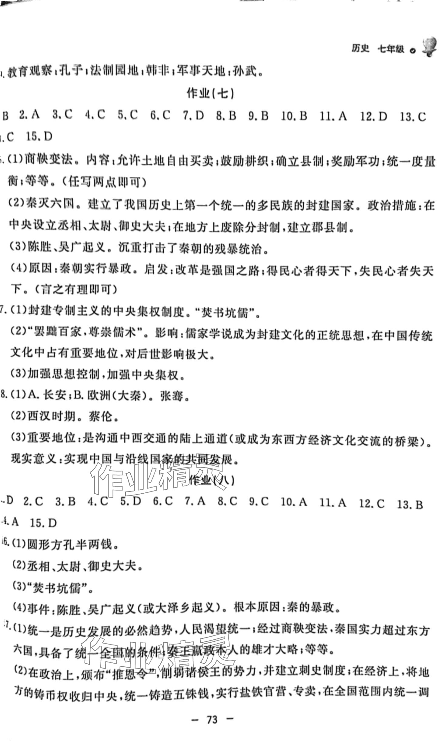 注:目前有些书本章节名称可能整理的还不是很完善,但都是按照顺序排列的,请同学们按照顺序仔细查找。练习册 2024年快乐学习寒假作业东方出版社七年级历史 答案主要是用来给同学们做完题方便对答案用的,请勿直接抄袭。