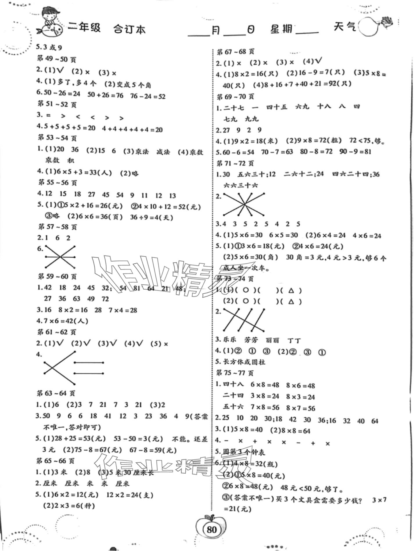 注:目前有些书本章节名称可能整理的还不是很完善,但都是按照顺序排列的,请同学们按照顺序仔细查找。练习册 2024年智趣寒假作业云南科技出版社二年级综合 答案主要是用来给同学们做完题方便对答案用的,请勿直接抄袭。