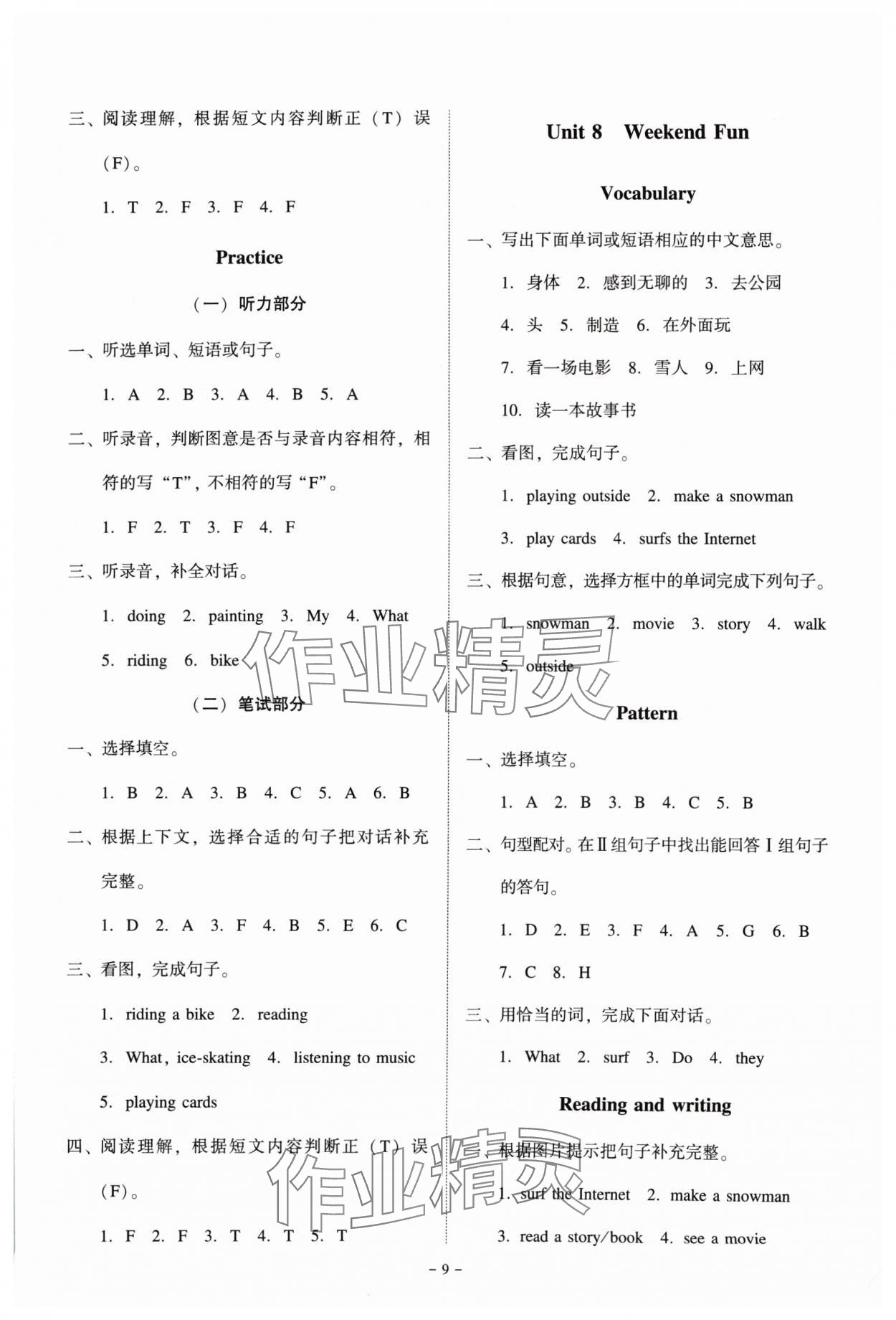 注:目前有些书本章节名称可能整理的还不是很完善,但都是按照顺序排列的,请同学们按照顺序仔细查找。练习册 2024年同步精练广东人民出版社四年级英语下册粤人版 答案主要是用来给同学们做完题方便对答案用的,请勿直接抄袭。