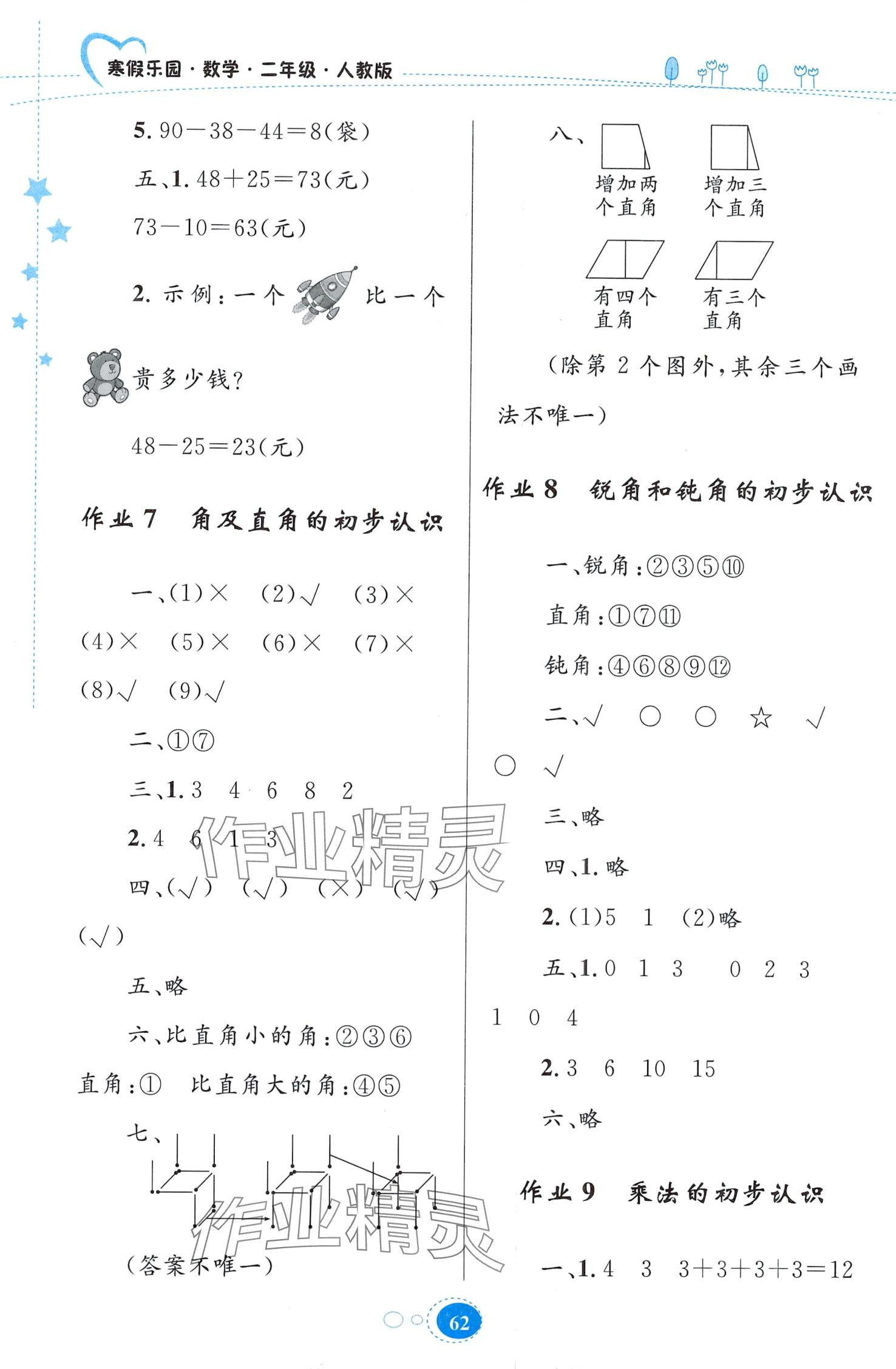 2024年寒假作业贵州人民出版社二年级数学人教版