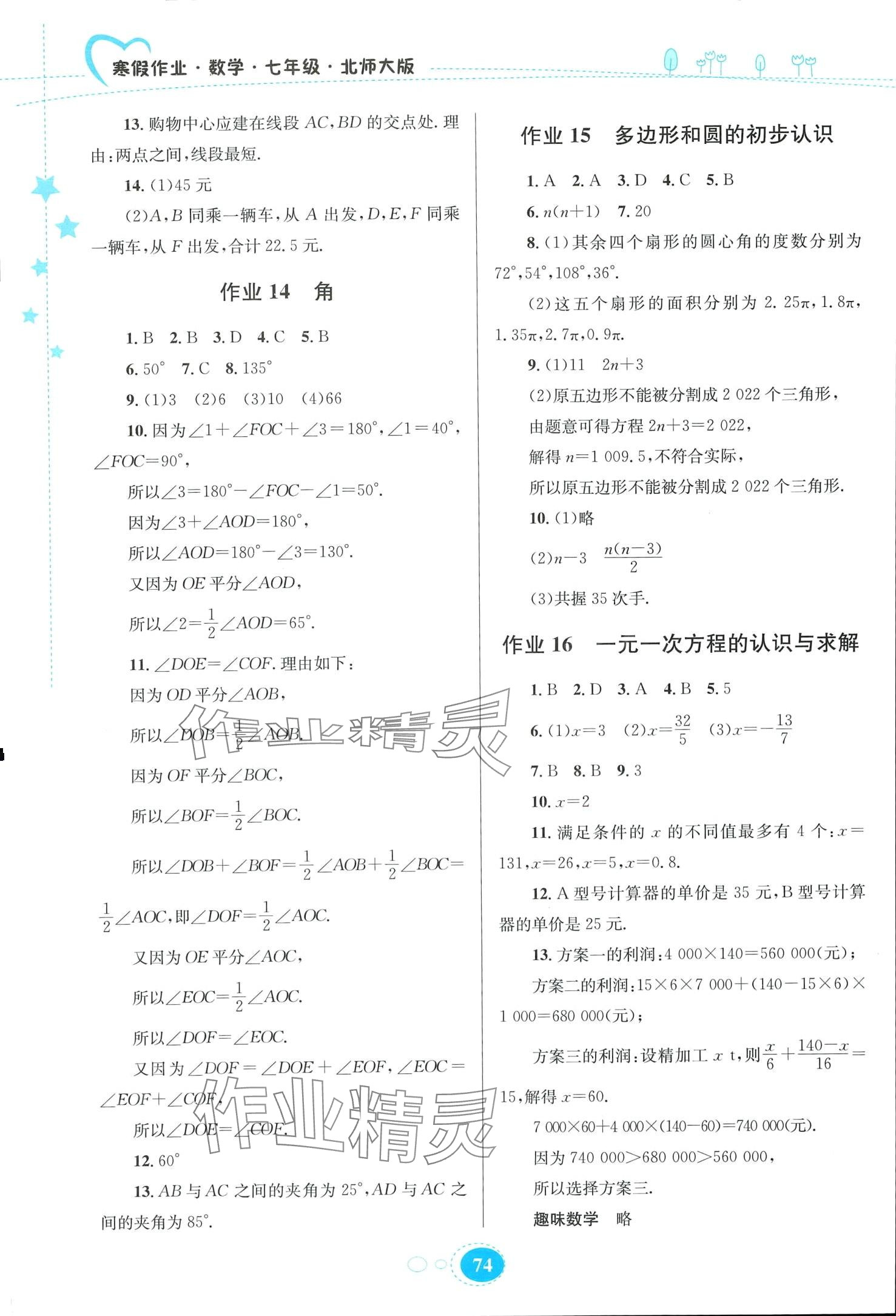 《2024年寒假作业贵州人民出版社七年级数学北师大版》