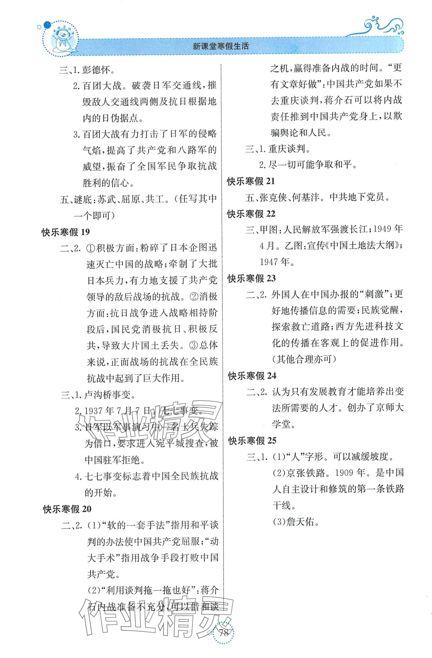 注:目前有些书本章节名称可能整理的还不是很完善,但都是按照顺序排列的,请同学们按照顺序仔细查找。练习册 2024年新课堂寒假生活八年级历史人教版 答案主要是用来给同学们做完题方便对答案用的,请勿直接抄袭。
