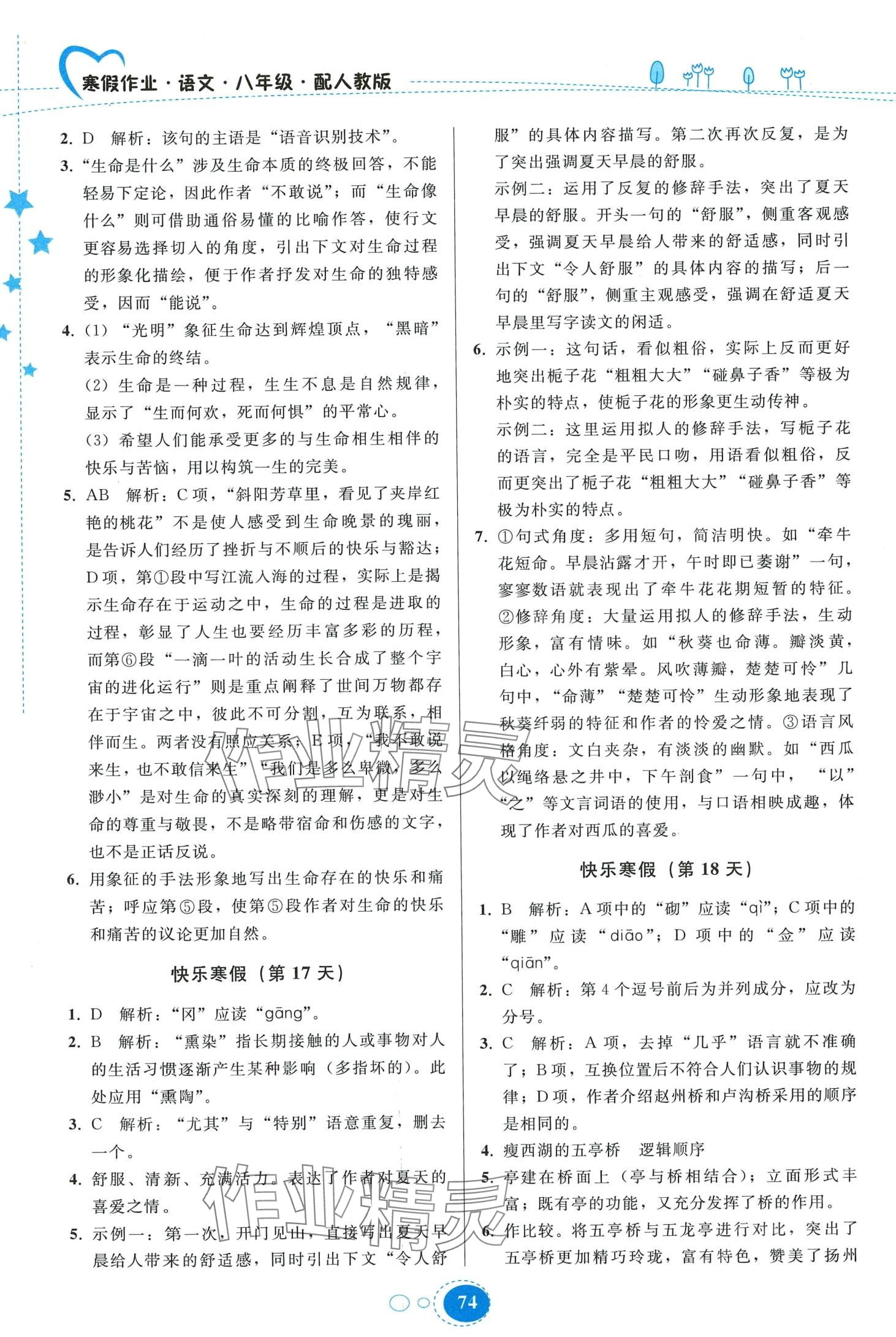 2024年寒假作业贵州人民出版社八年级语文人教版