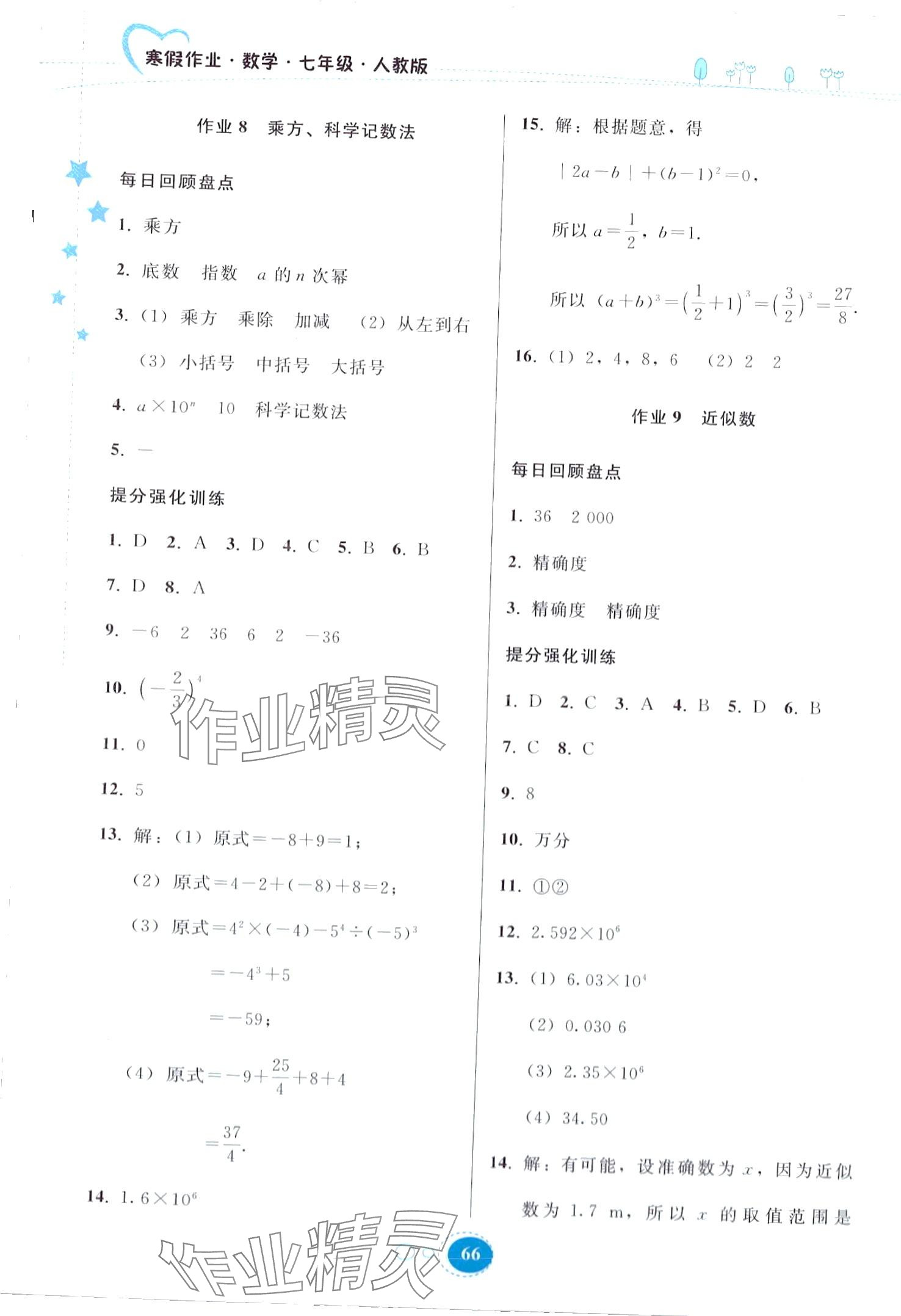 2024年寒假作业贵州人民出版社七年级数学人教版