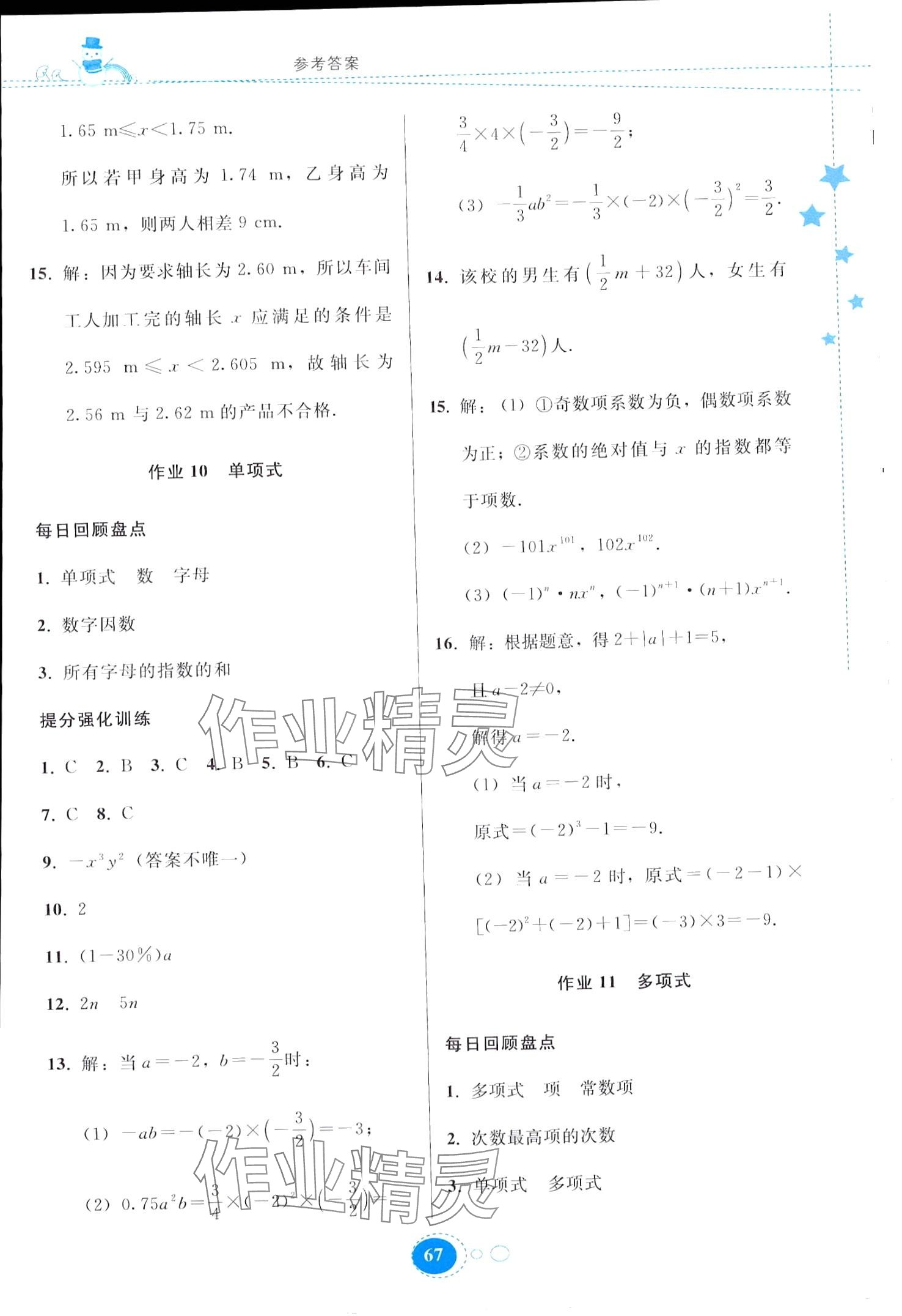 2024年寒假作业贵州人民出版社七年级数学人教版