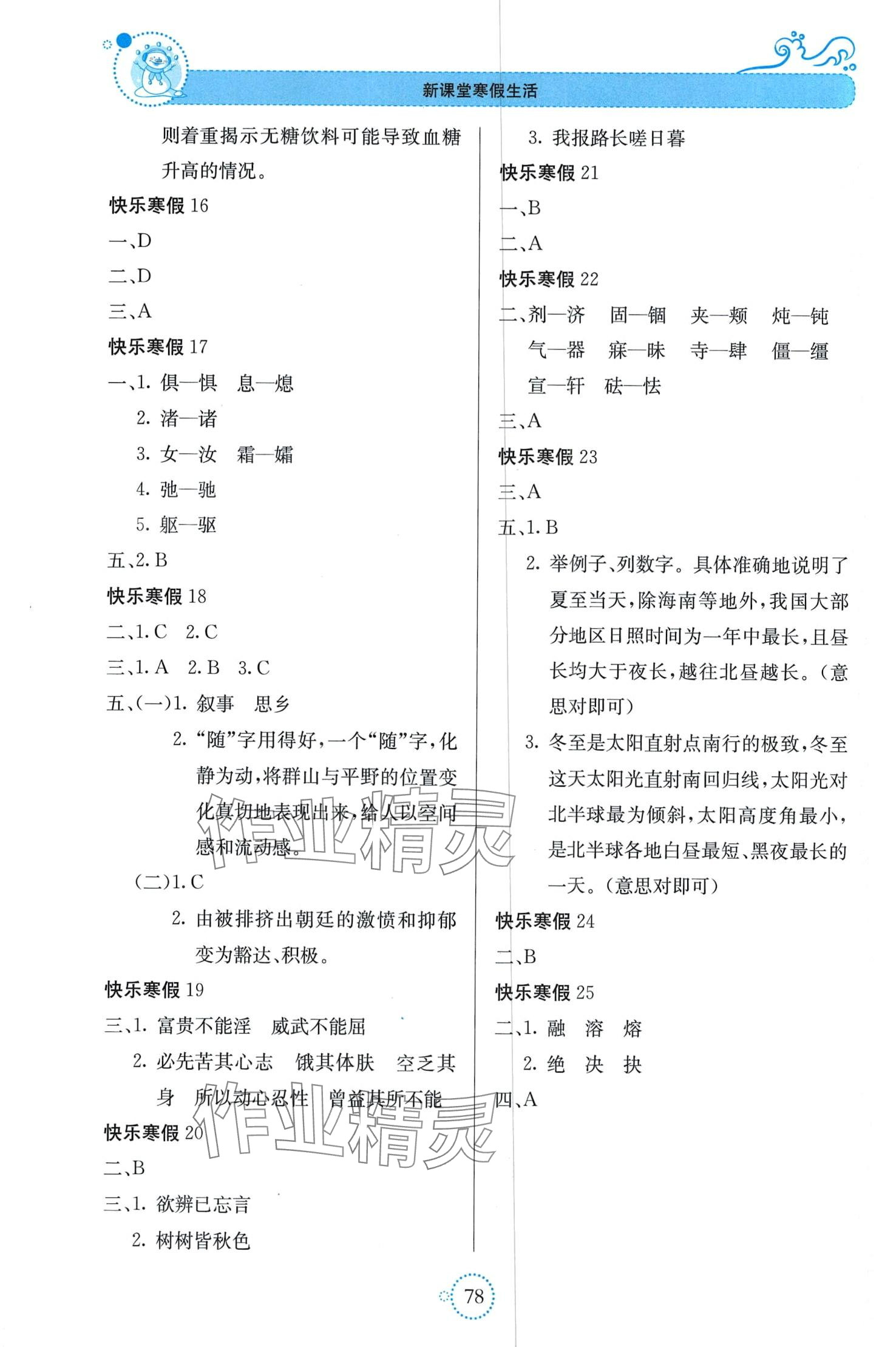 注:目前有些书本章节名称可能整理的还不是很完善,但都是按照顺序排列的,请同学们按照顺序仔细查找。练习册 2024年新课堂寒假生活八年级语文人教版 答案主要是用来给同学们做完题方便对答案用的,请勿直接抄袭。