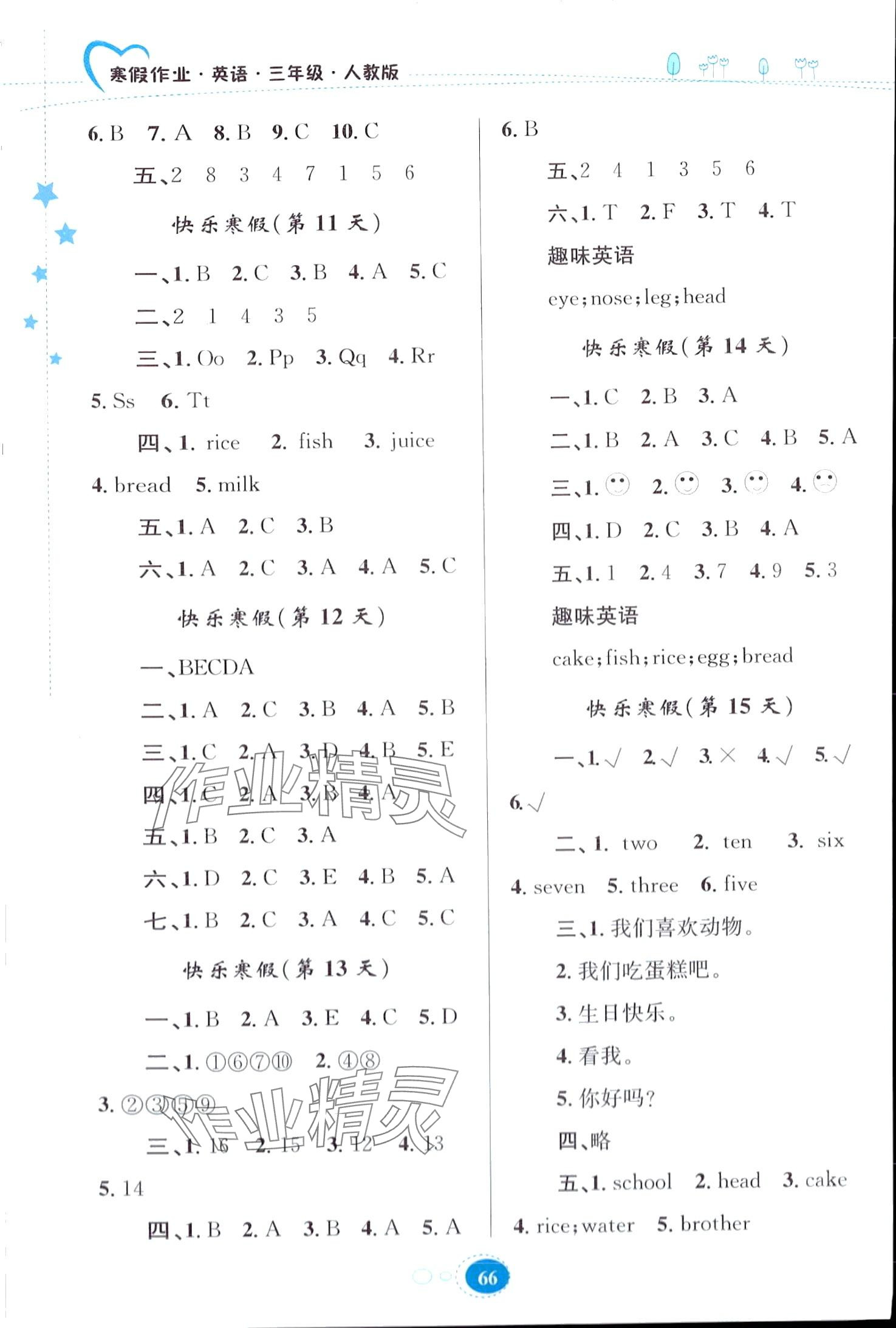 《2024年寒假作业贵州人民出版社三年级英语人教版》