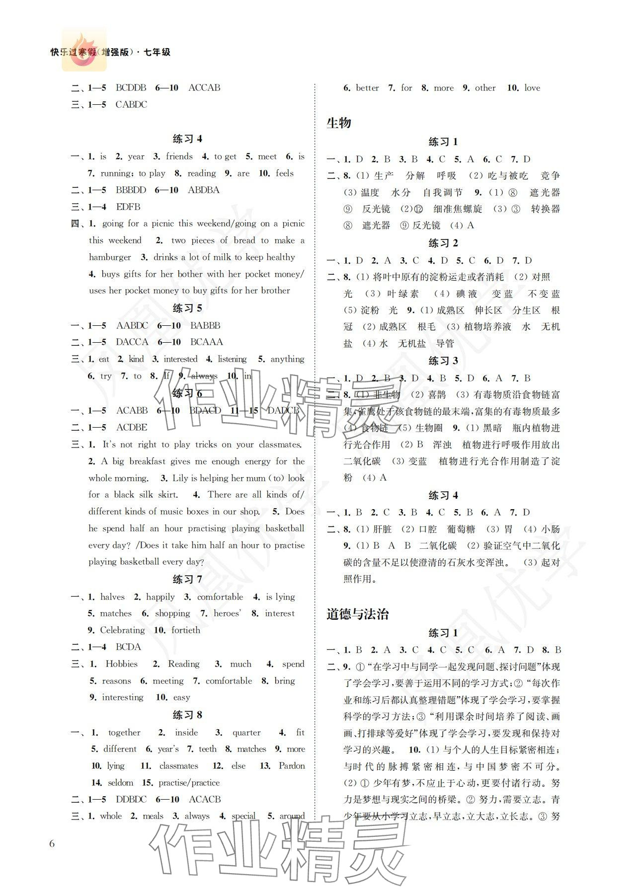 注:目前有些书本章节名称可能整理的还不是很完善,但都是按照顺序排列的,请同学们按照顺序仔细查找。练习册 2024年快乐过寒假江苏凤凰科学技术出版社七年级增强版 答案主要是用来给同学们做完题方便对答案用的,请勿直接抄袭。