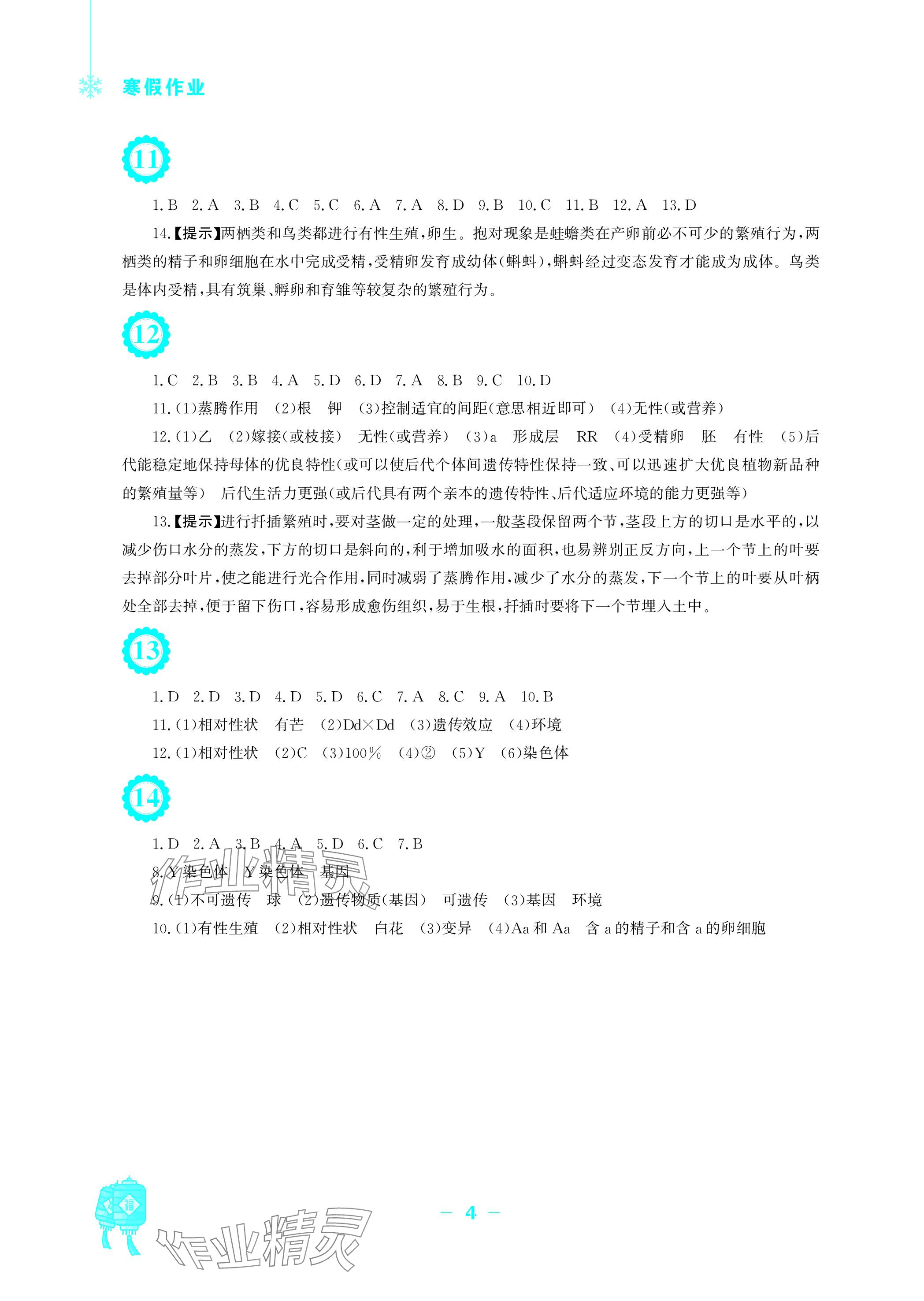 《2024年寒假作业安徽教育出版社八年级生物北师大版》