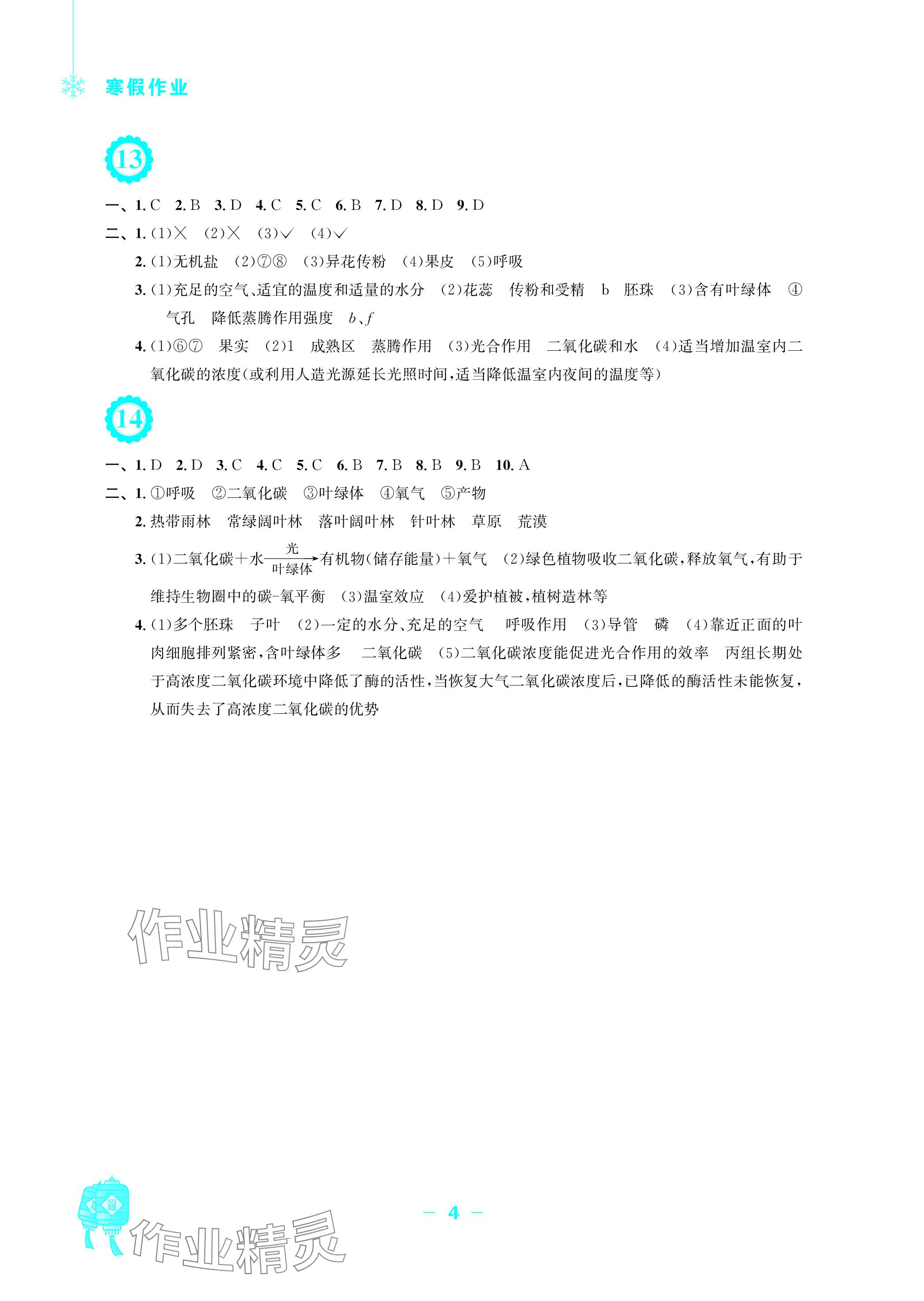 2024年寒假作业安徽教育出版社七年级生物北师大版