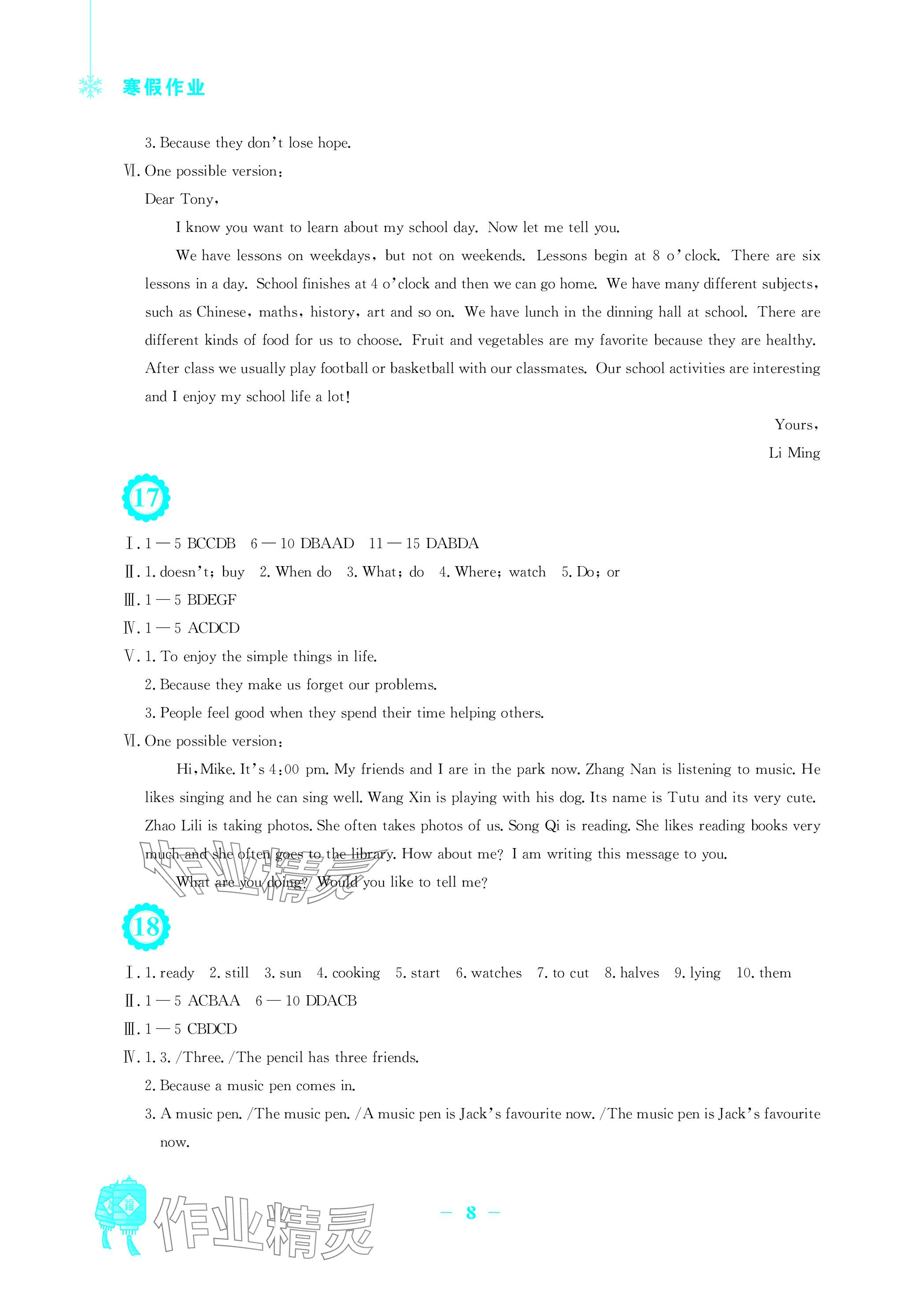 注:目前有些书本章节名称可能整理的还不是很完善,但都是按照顺序排列的,请同学们按照顺序仔细查找。练习册 2024年寒假作业安徽教育出版社七年级英语译林版 答案主要是用来给同学们做完题方便对答案用的,请勿直接抄袭。