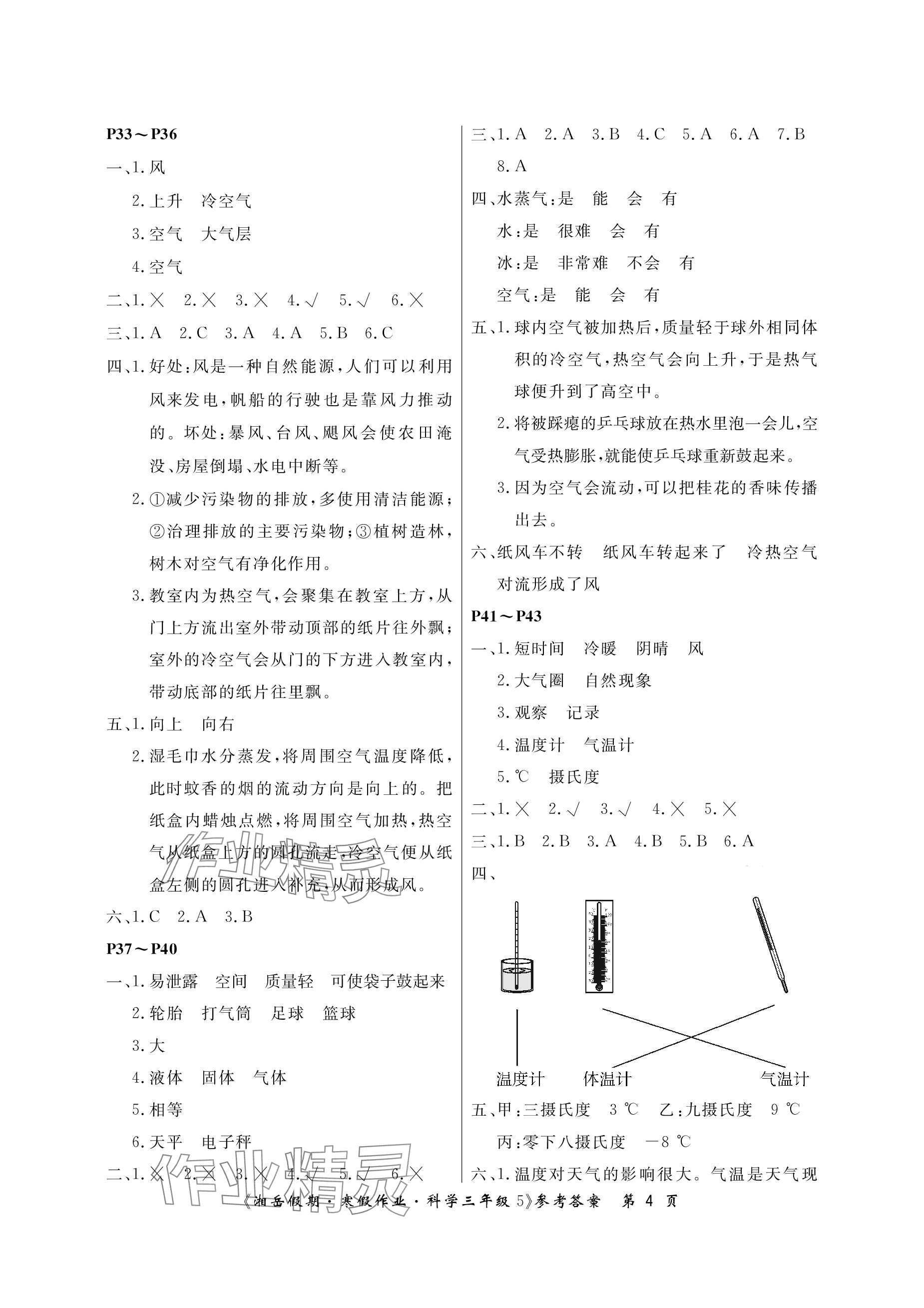 2024年湘岳假期寒假作业三年级科学教科版第五版