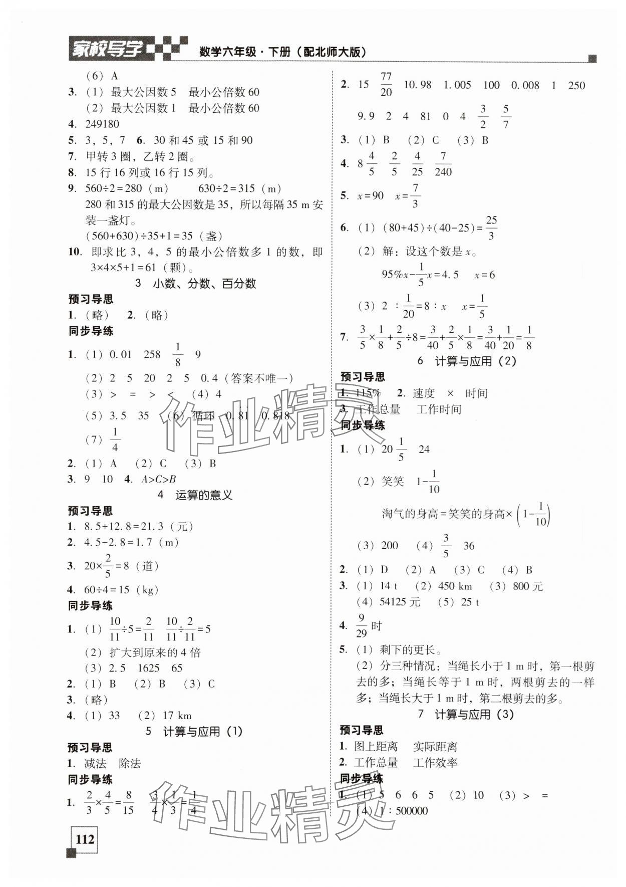 2024年家校导学小学课时南粤练案六年级数学下册北师大版