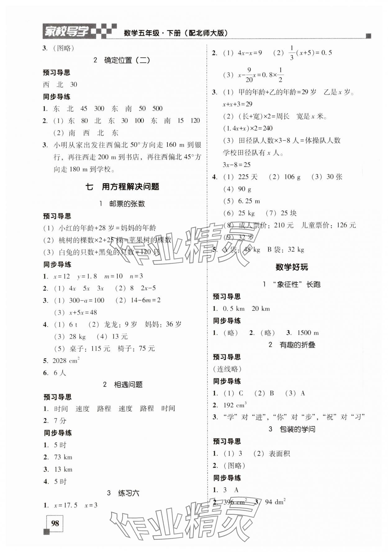 注:目前有些书本章节名称可能整理的还不是很完善,但都是按照顺序排列的,请同学们按照顺序仔细查找。练习册 2024年家校导学小学课时南粤练案五年级数学下册北师大版 答案主要是用来给同学们做完题方便对答案用的,请勿直接抄袭。