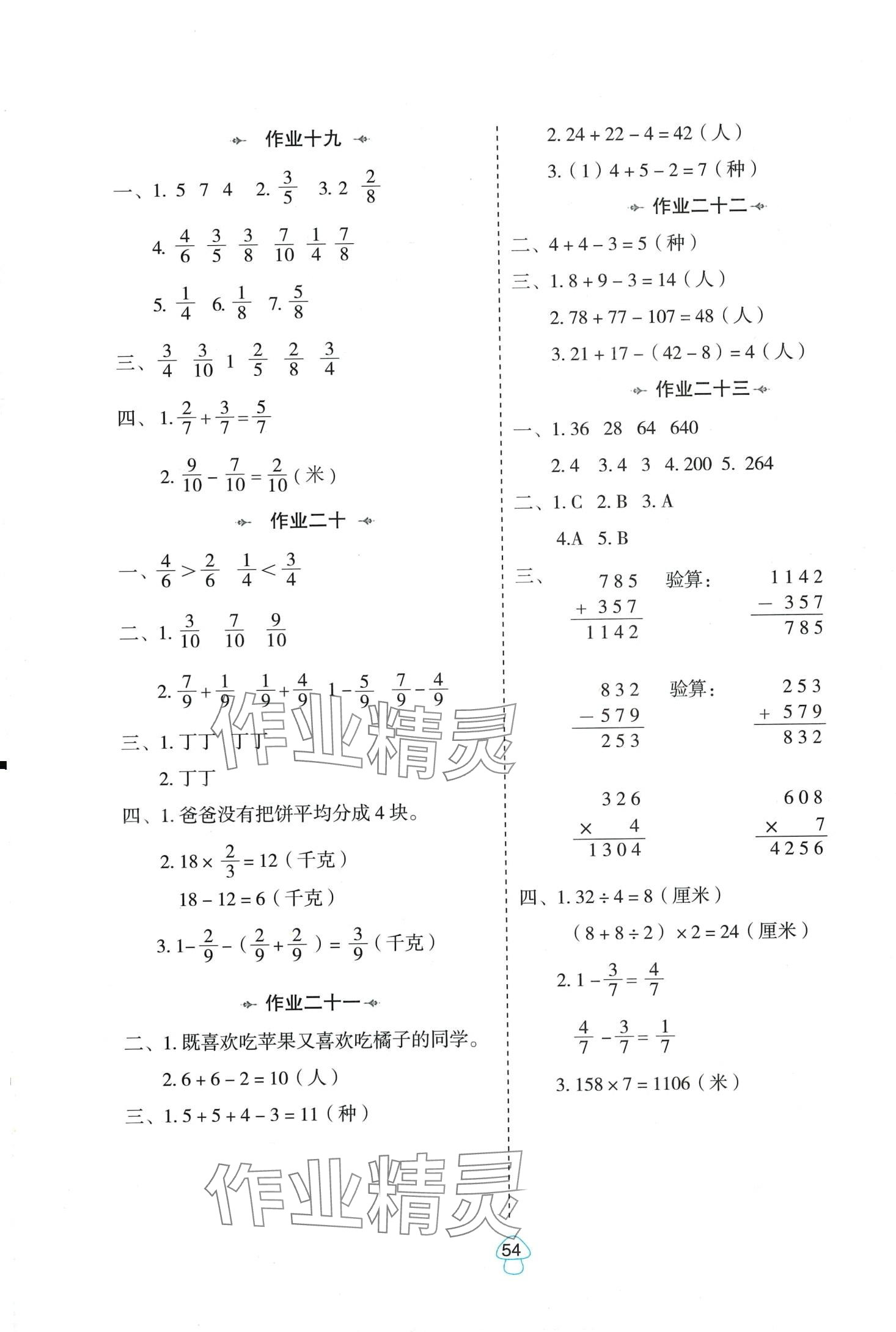 2024年寒假作业陕西人民教育出版社三年级数学人教版