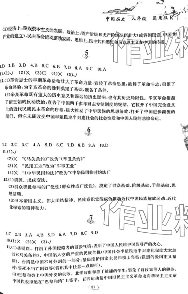 注:目前有些书本章节名称可能整理的还不是很完善,但都是按照顺序排列的,请同学们按照顺序仔细查找。练习册 2024年寒假作业黄山书社八年级历史人教版 答案主要是用来给同学们做完题方便对答案用的,请勿直接抄袭。