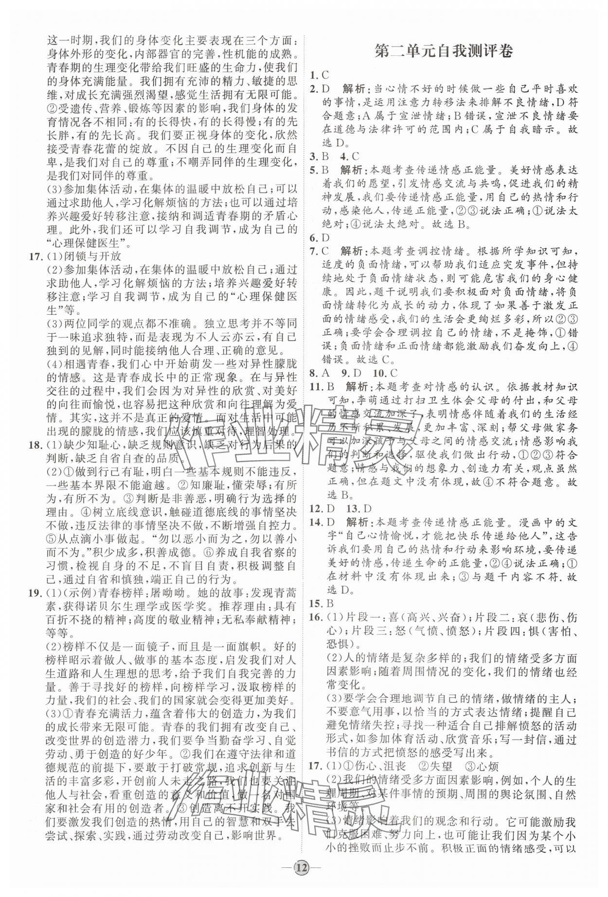 注:目前有些书本章节名称可能整理的还不是很完善,但都是按照顺序排列的,请同学们按照顺序仔细查找。练习册 2024年优加学案课时通七年级道德与法治下册人教版 答案主要是用来给同学们做完题方便对答案用的,请勿直接抄袭。