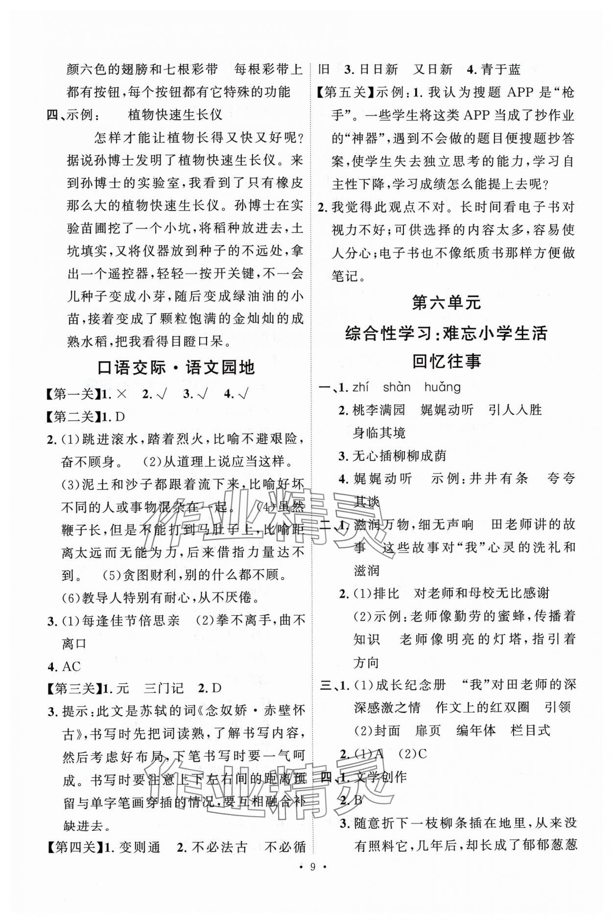 注:目前有些书本章节名称可能整理的还不是很完善,但都是按照顺序排列的,请同学们按照顺序仔细查找。练习册 2024年每时每刻快乐优加作业本六年级语文下册人教版 答案主要是用来给同学们做完题方便对答案用的,请勿直接抄袭。