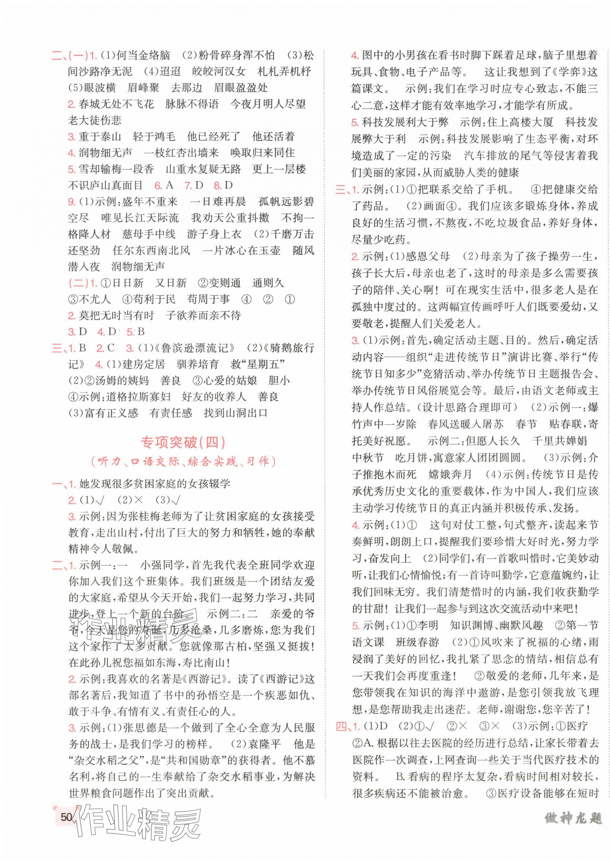 注:目前有些书本章节名称可能整理的还不是很完善,但都是按照顺序排列的,请同学们按照顺序仔细查找。练习册 2024年神龙牛皮卷海淀考王六年级语文下册人教版 答案主要是用来给同学们做完题方便对答案用的,请勿直接抄袭。