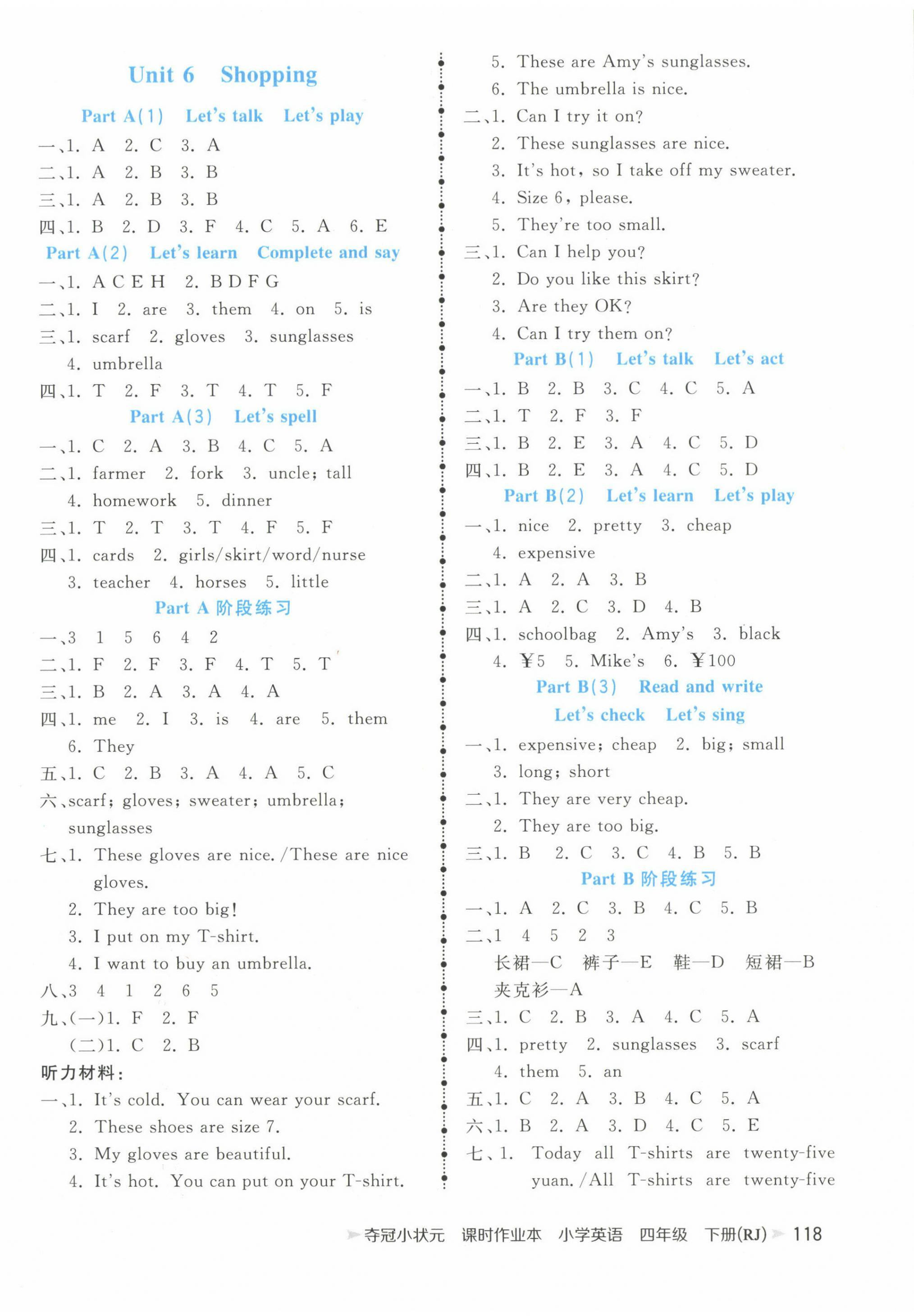 注:目前有些书本章节名称可能整理的还不是很完善,但都是按照顺序排列的,请同学们按照顺序仔细查找。练习册 2024年夺冠小状元课时作业本四年级英语下册人教版 答案主要是用来给同学们做完题方便对答案用的,请勿直接抄袭。