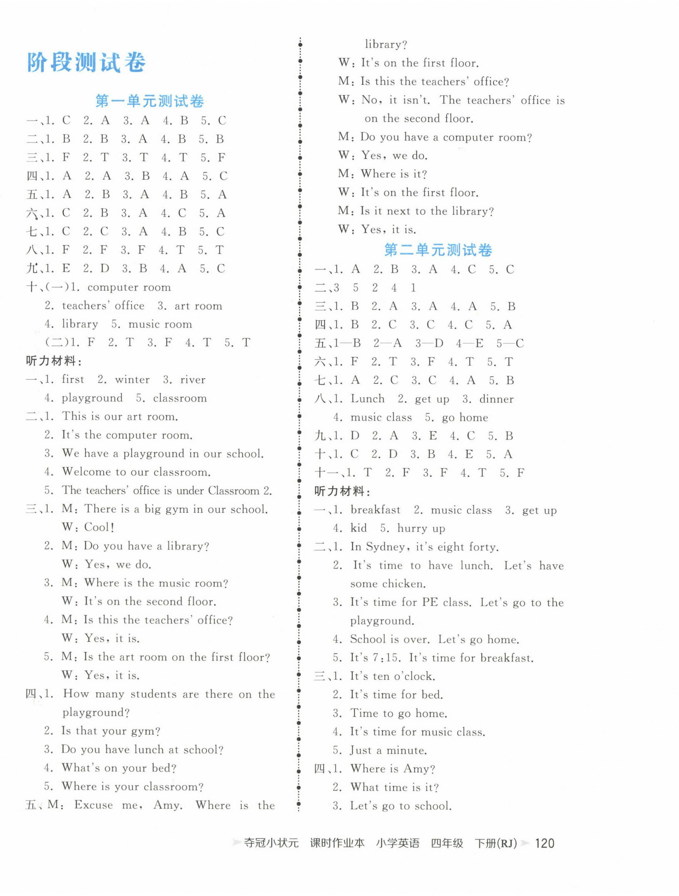 《2024年夺冠小状元课时作业本四年级英语下册人教版》