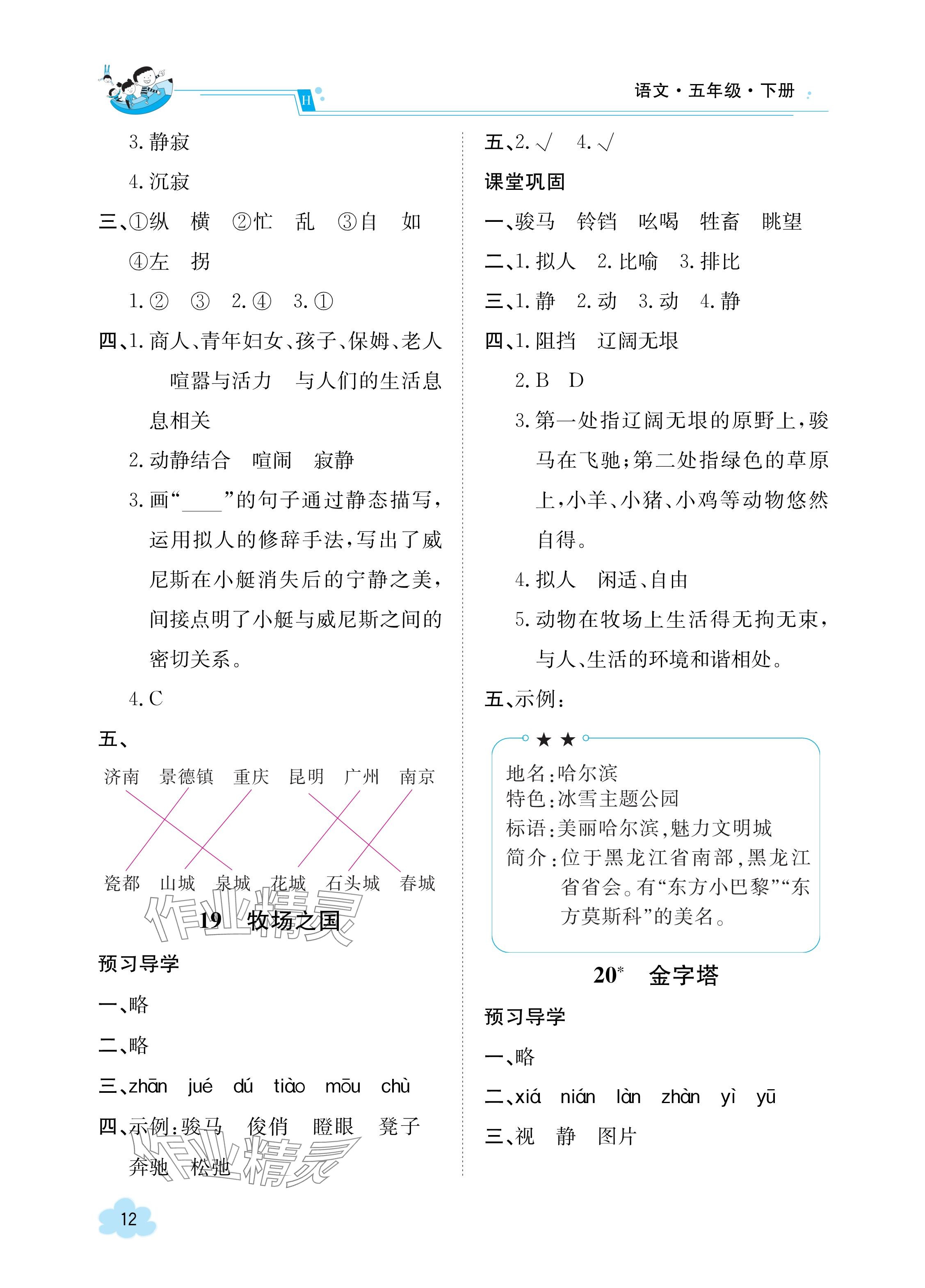 注:目前有些书本章节名称可能整理的还不是很完善,但都是按照顺序排列的,请同学们按照顺序仔细查找。练习册 2024年金太阳导学案五年级语文下册人教版 答案主要是用来给同学们做完题方便对答案用的,请勿直接抄袭。