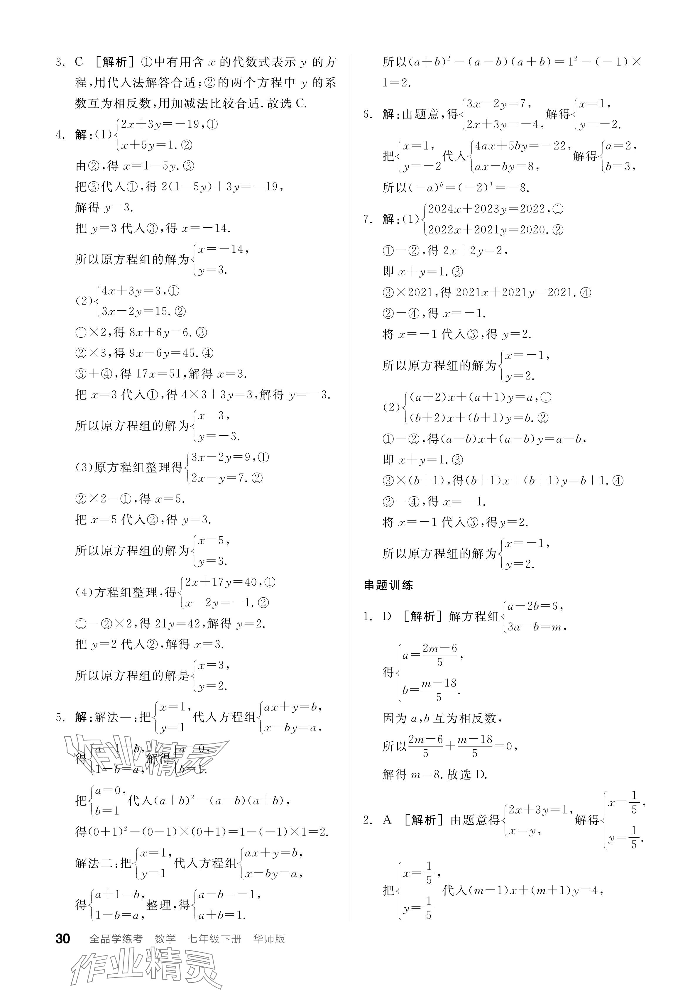 注:目前有些书本章节名称可能整理的还不是很完善,但都是按照顺序排列的,请同学们按照顺序仔细查找。练习册 2024年全品学练考七年级数学下册华师大版 答案主要是用来给同学们做完题方便对答案用的,请勿直接抄袭。