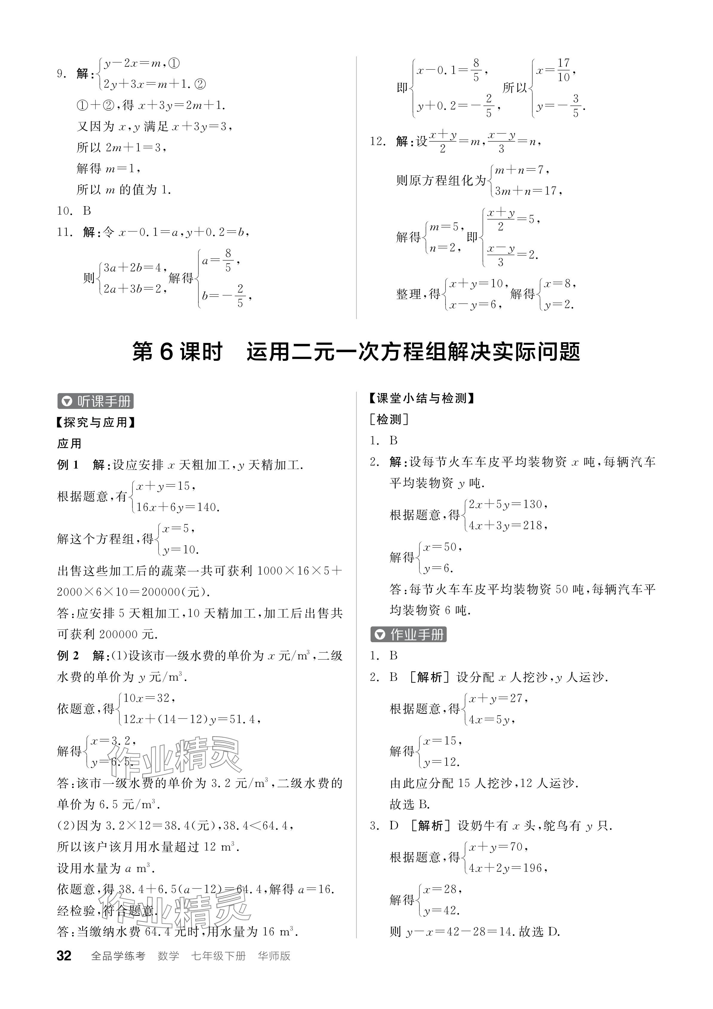 注:目前有些书本章节名称可能整理的还不是很完善,但都是按照顺序排列的,请同学们按照顺序仔细查找。练习册 2024年全品学练考七年级数学下册华师大版 答案主要是用来给同学们做完题方便对答案用的,请勿直接抄袭。