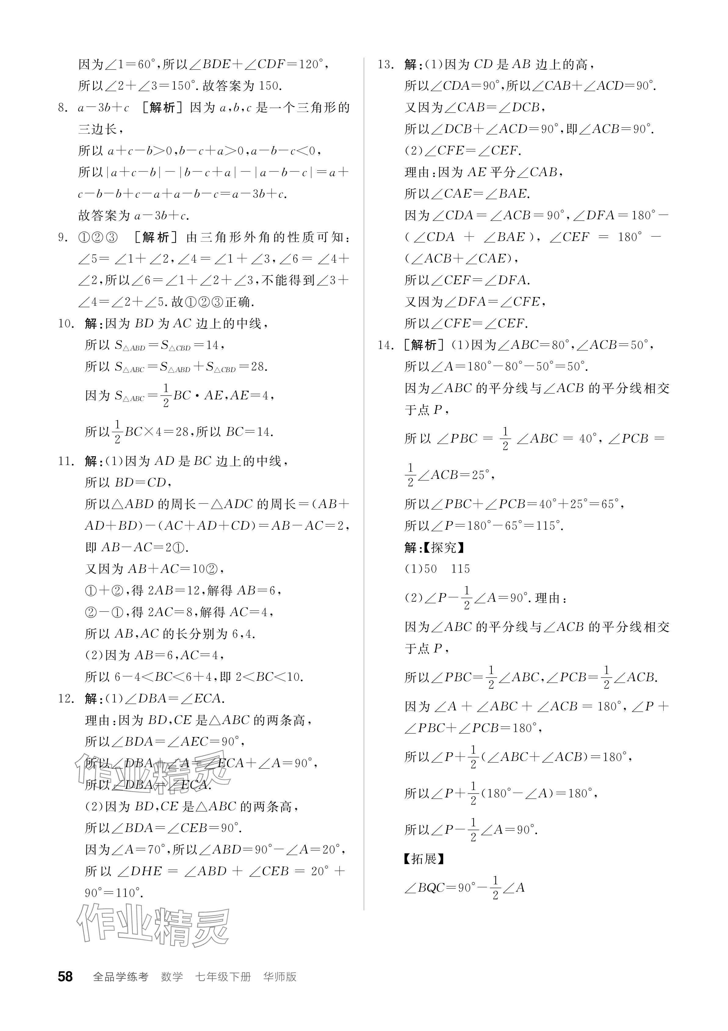 注:目前有些书本章节名称可能整理的还不是很完善,但都是按照顺序排列的,请同学们按照顺序仔细查找。练习册 2024年全品学练考七年级数学下册华师大版 答案主要是用来给同学们做完题方便对答案用的,请勿直接抄袭。