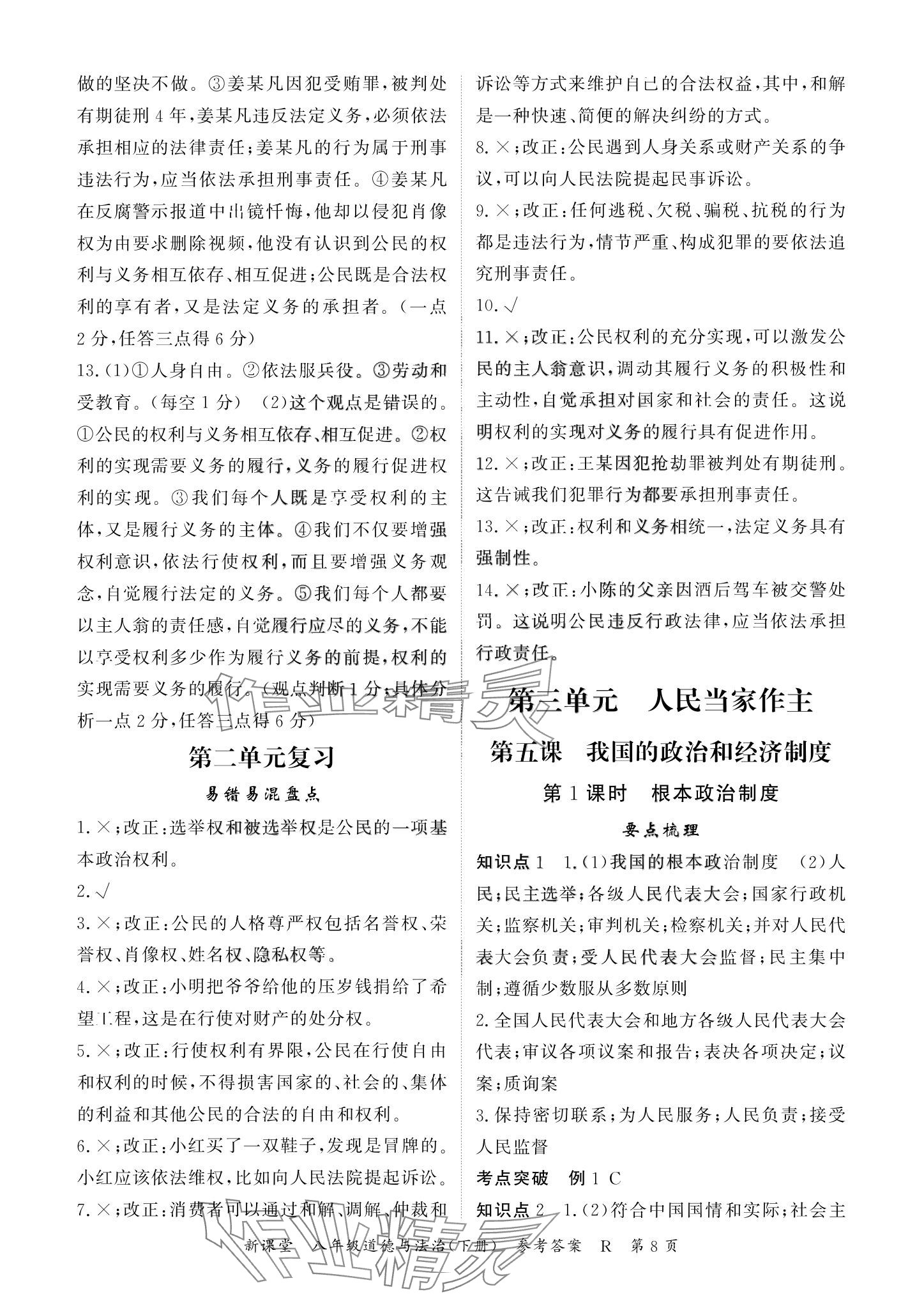 注:目前有些书本章节名称可能整理的还不是很完善,但都是按照顺序排列的,请同学们按照顺序仔细查找。练习册 2024年启航新课堂八年级道德与法治下册人教版 答案主要是用来给同学们做完题方便对答案用的,请勿直接抄袭。