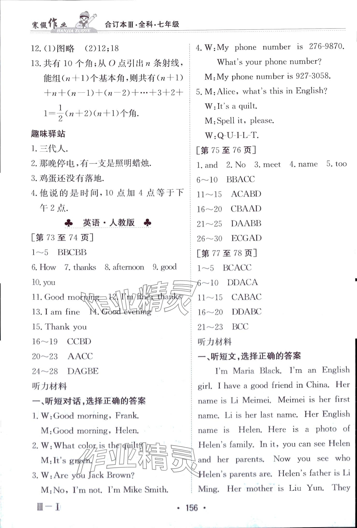 注:目前有些书本章节名称可能整理的还不是很完善,但都是按照顺序排列的,请同学们按照顺序仔细查找。练习册 2024年寒假作业江西高校出版社七年级综合III 答案主要是用来给同学们做完题方便对答案用的,请勿直接抄袭。
