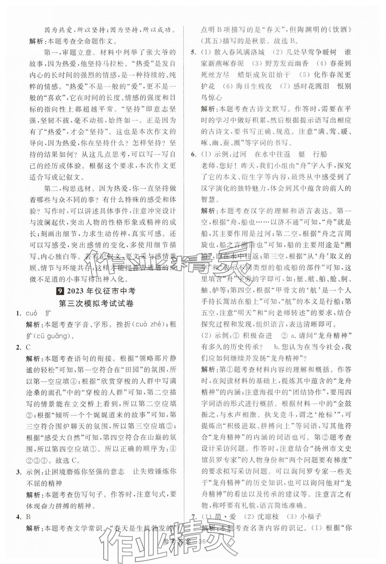 注:目前有些书本章节名称可能整理的还不是很完善,但都是按照顺序排列的,请同学们按照顺序仔细查找。练习册 2024年扬州市中考总复习一卷通语文 答案主要是用来给同学们做完题方便对答案用的,请勿直接抄袭。