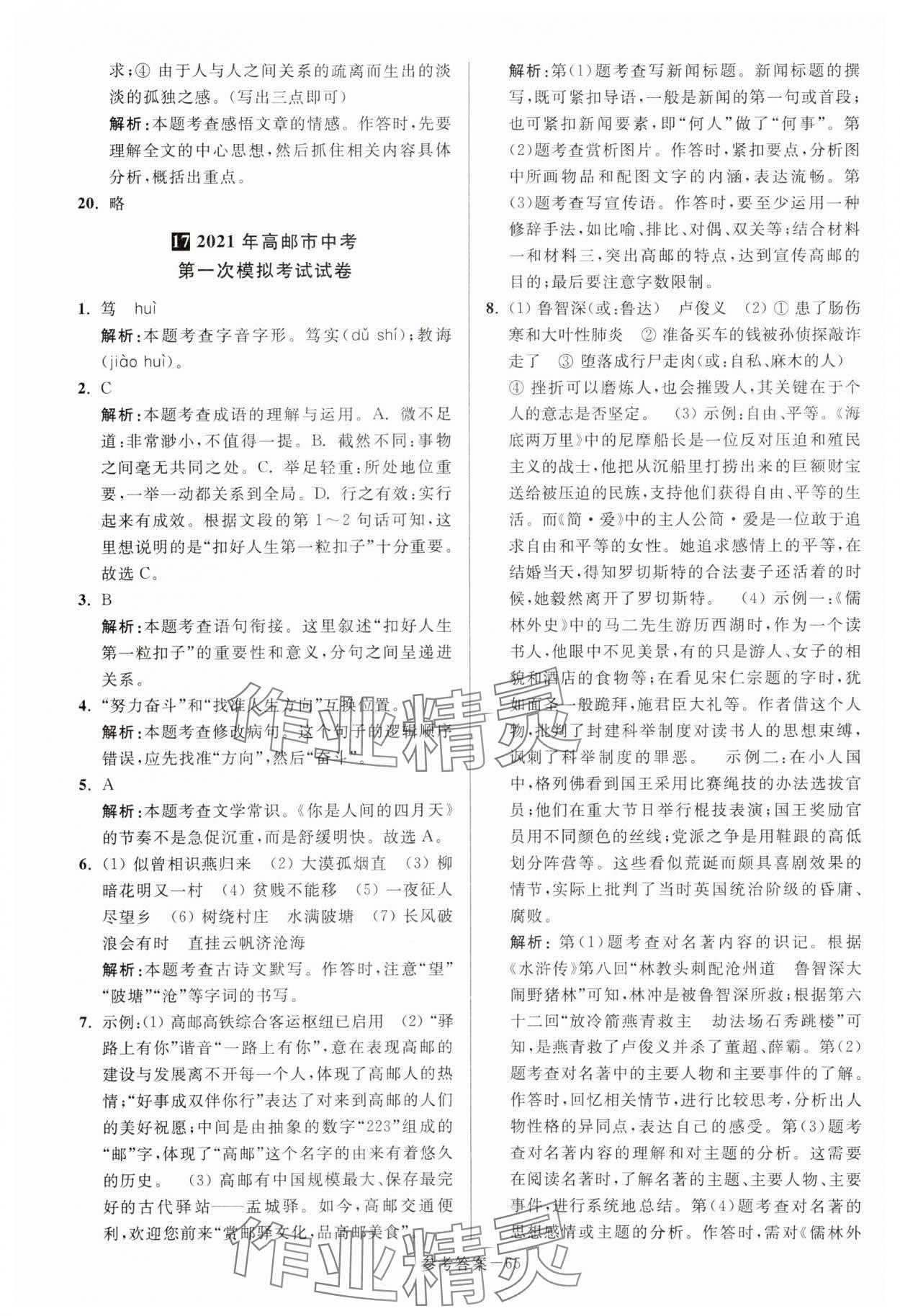 注:目前有些书本章节名称可能整理的还不是很完善,但都是按照顺序排列的,请同学们按照顺序仔细查找。练习册 2024年扬州市中考总复习一卷通语文 答案主要是用来给同学们做完题方便对答案用的,请勿直接抄袭。