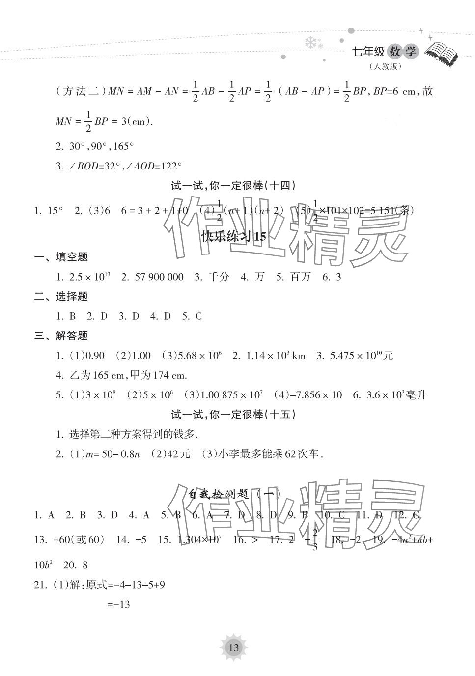 注:目前有些书本章节名称可能整理的还不是很完善,但都是按照顺序排列的,请同学们按照顺序仔细查找。练习册 2024年寒假乐园海南出版社七年级数学人教版 答案主要是用来给同学们做完题方便对答案用的,请勿直接抄袭。