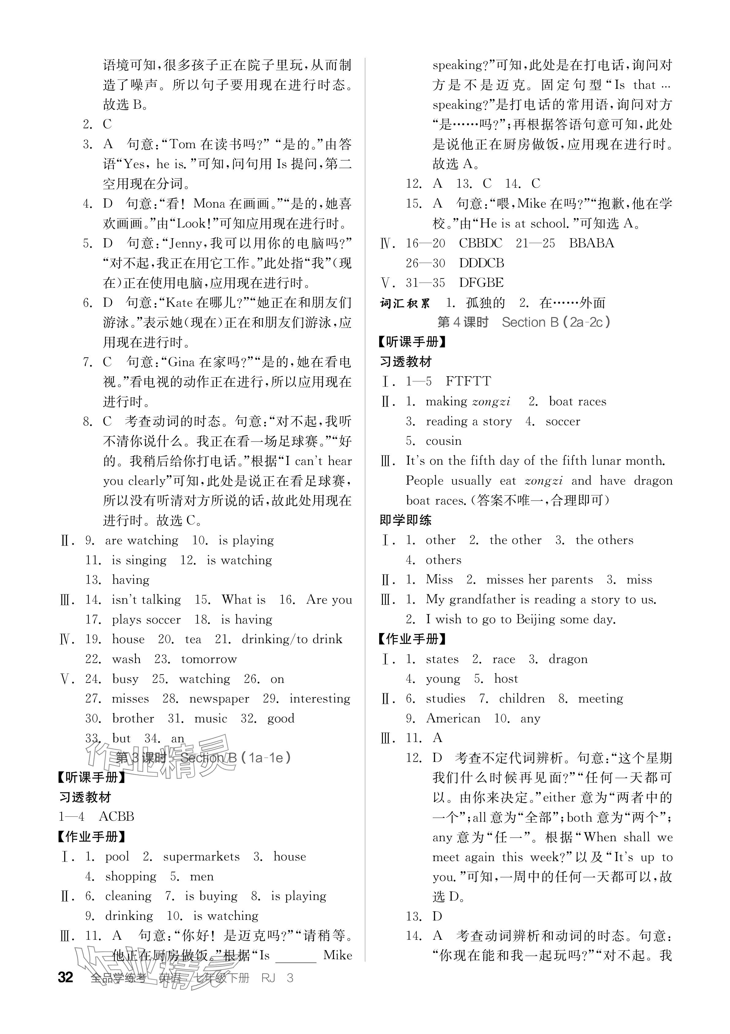 注:目前有些书本章节名称可能整理的还不是很完善,但都是按照顺序排列的,请同学们按照顺序仔细查找。练习册 2024年全品学练考七年级英语下册人教版江西专版 答案主要是用来给同学们做完题方便对答案用的,请勿直接抄袭。