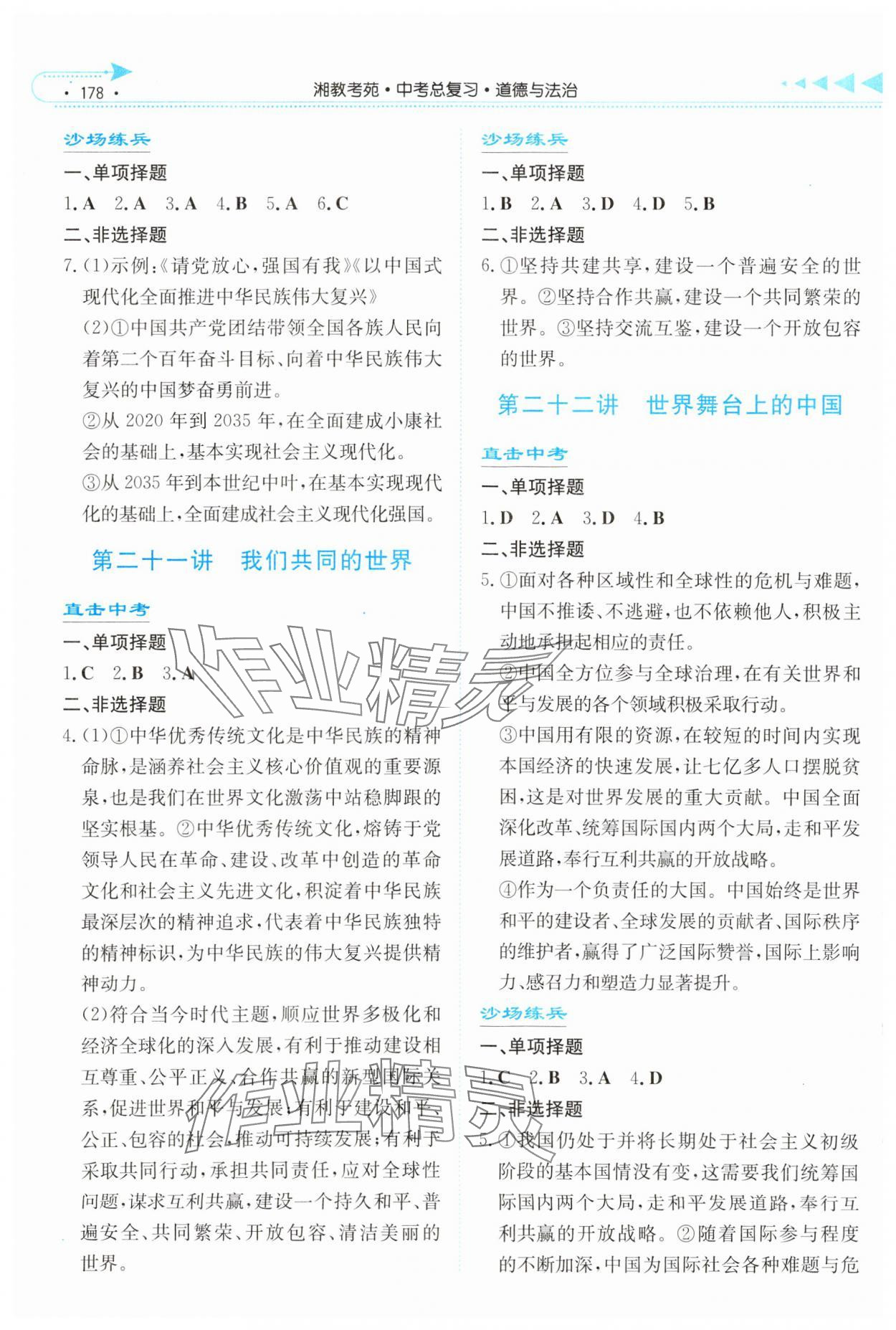 注:目前有些书本章节名称可能整理的还不是很完善,但都是按照顺序排列的,请同学们按照顺序仔细查找。练习册 2024年湘教考苑中考总复习道德与法治湘西版 答案主要是用来给同学们做完题方便对答案用的,请勿直接抄袭。