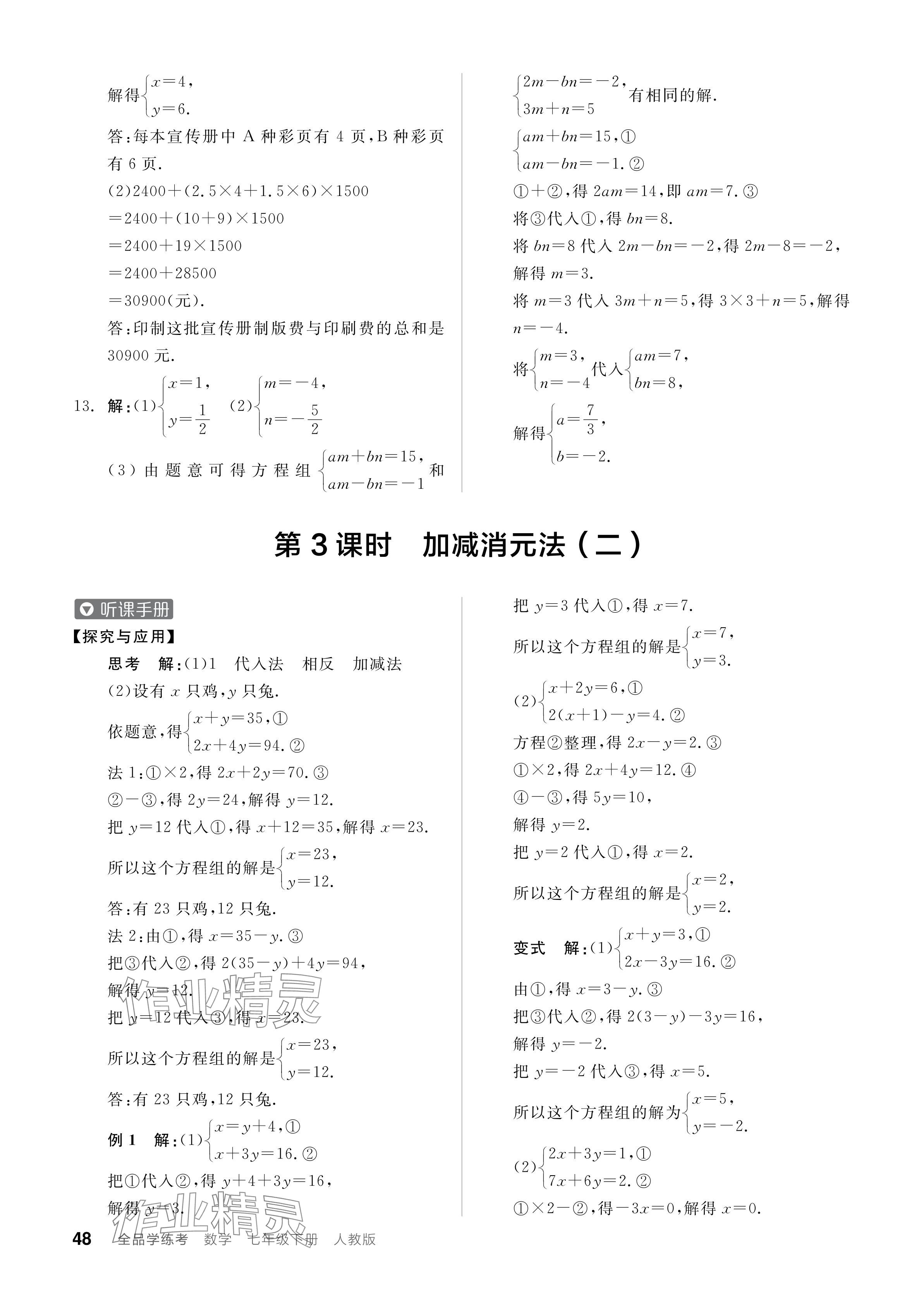注:目前有些书本章节名称可能整理的还不是很完善,但都是按照顺序排列的,请同学们按照顺序仔细查找。练习册 2024年全品学练考七年级数学下册人教版 答案主要是用来给同学们做完题方便对答案用的,请勿直接抄袭。