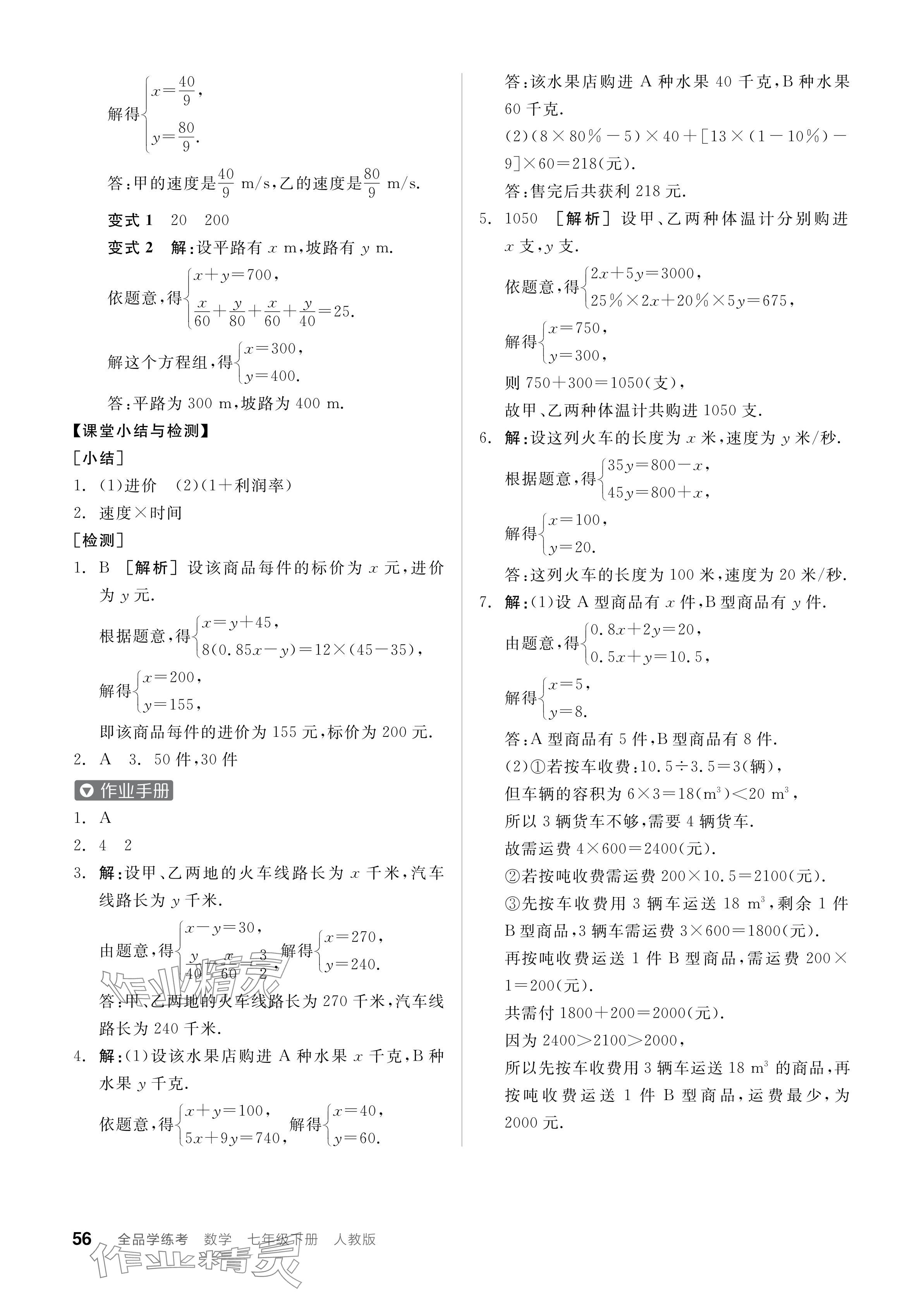 注:目前有些书本章节名称可能整理的还不是很完善,但都是按照顺序排列的,请同学们按照顺序仔细查找。练习册 2024年全品学练考七年级数学下册人教版 答案主要是用来给同学们做完题方便对答案用的,请勿直接抄袭。