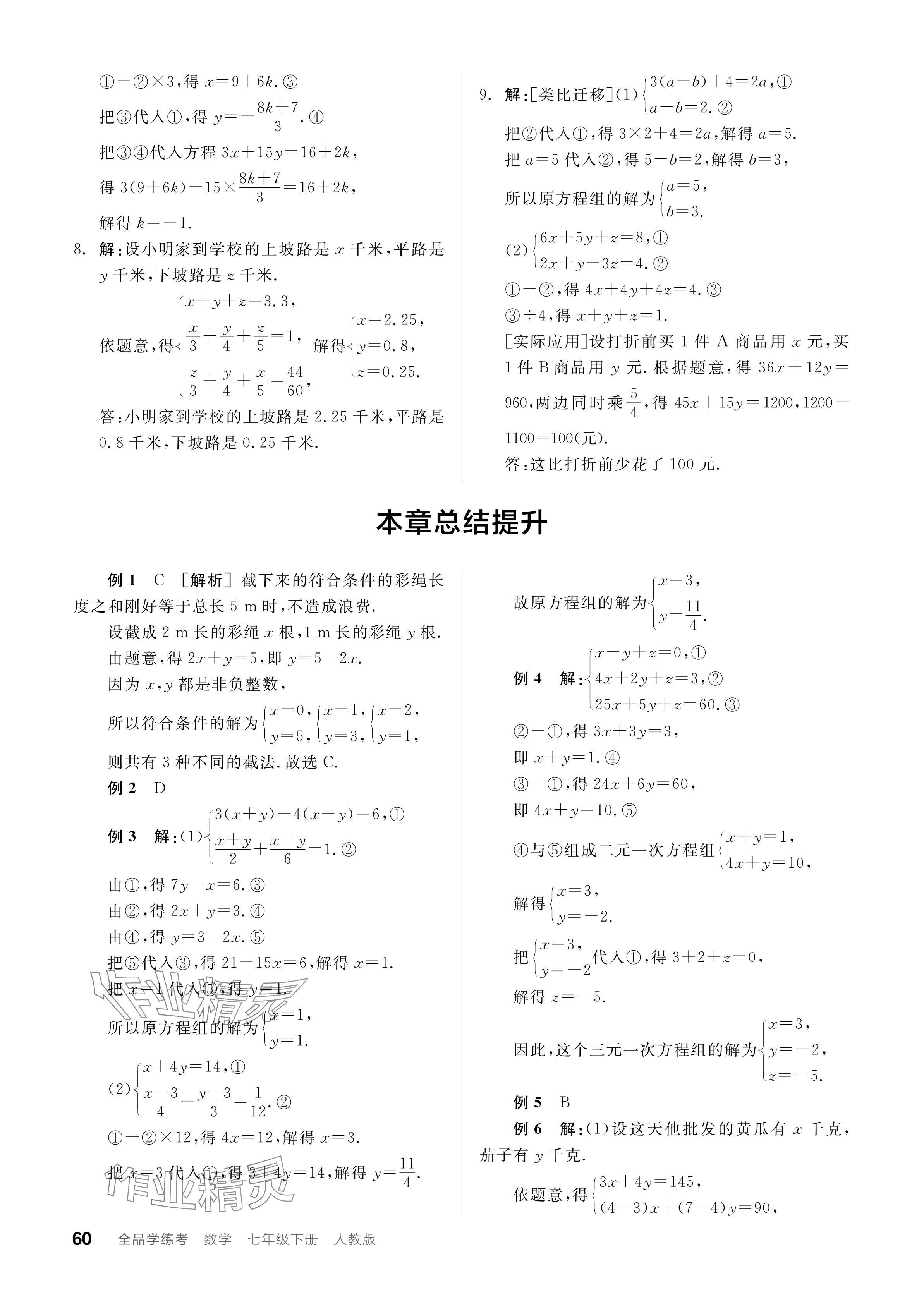 注:目前有些书本章节名称可能整理的还不是很完善,但都是按照顺序排列的,请同学们按照顺序仔细查找。练习册 2024年全品学练考七年级数学下册人教版 答案主要是用来给同学们做完题方便对答案用的,请勿直接抄袭。