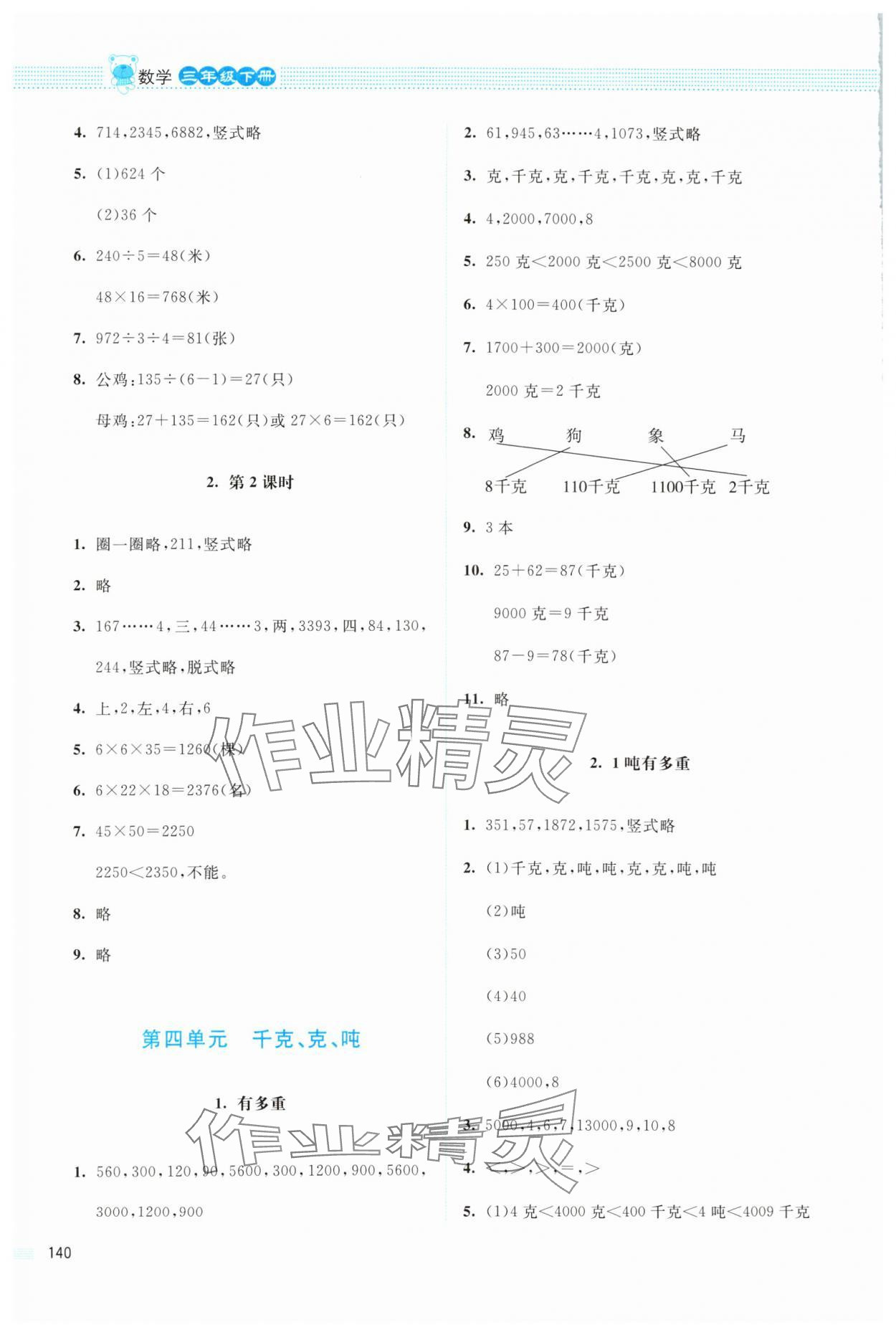 注:目前有些书本章节名称可能整理的还不是很完善,但都是按照顺序排列的,请同学们按照顺序仔细查找。练习册 2024年课堂精练三年级数学下册北师大版四川专版 答案主要是用来给同学们做完题方便对答案用的,请勿直接抄袭。
